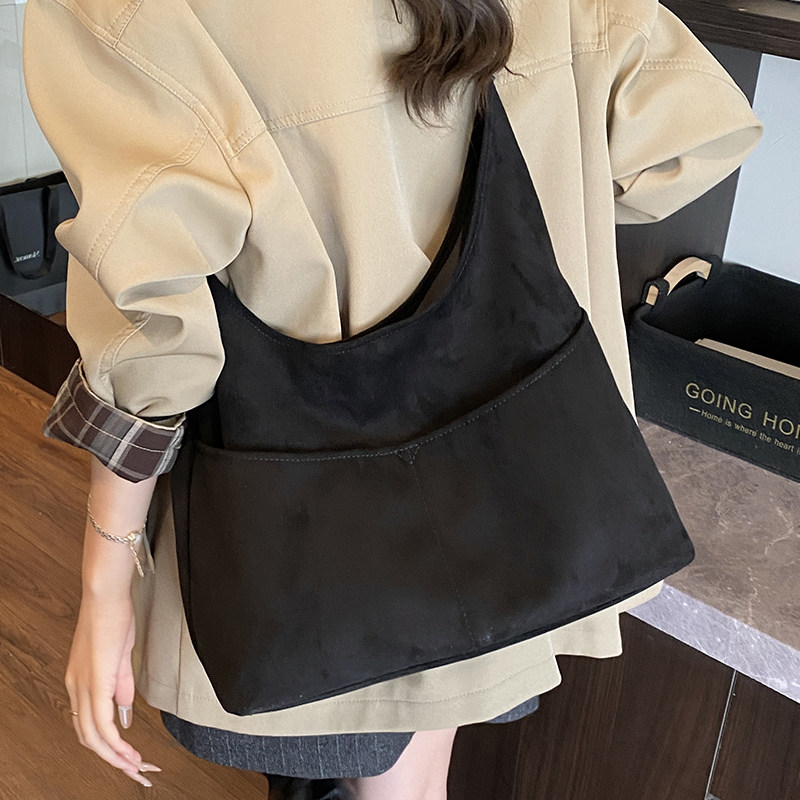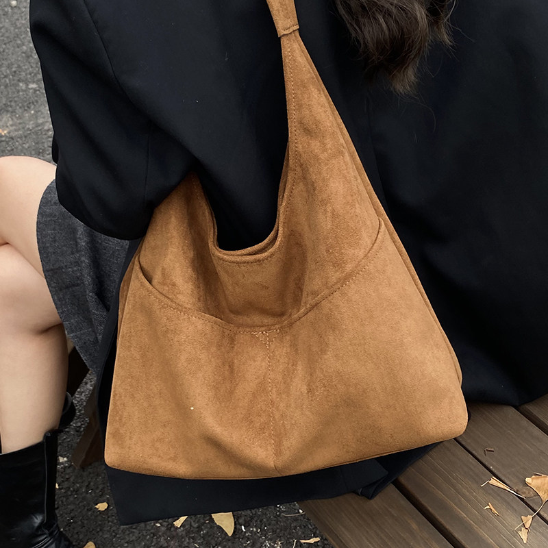 时尚慵懒风麂皮单肩托特包女式2026新款秋季百搭大容量单肩斜挎包