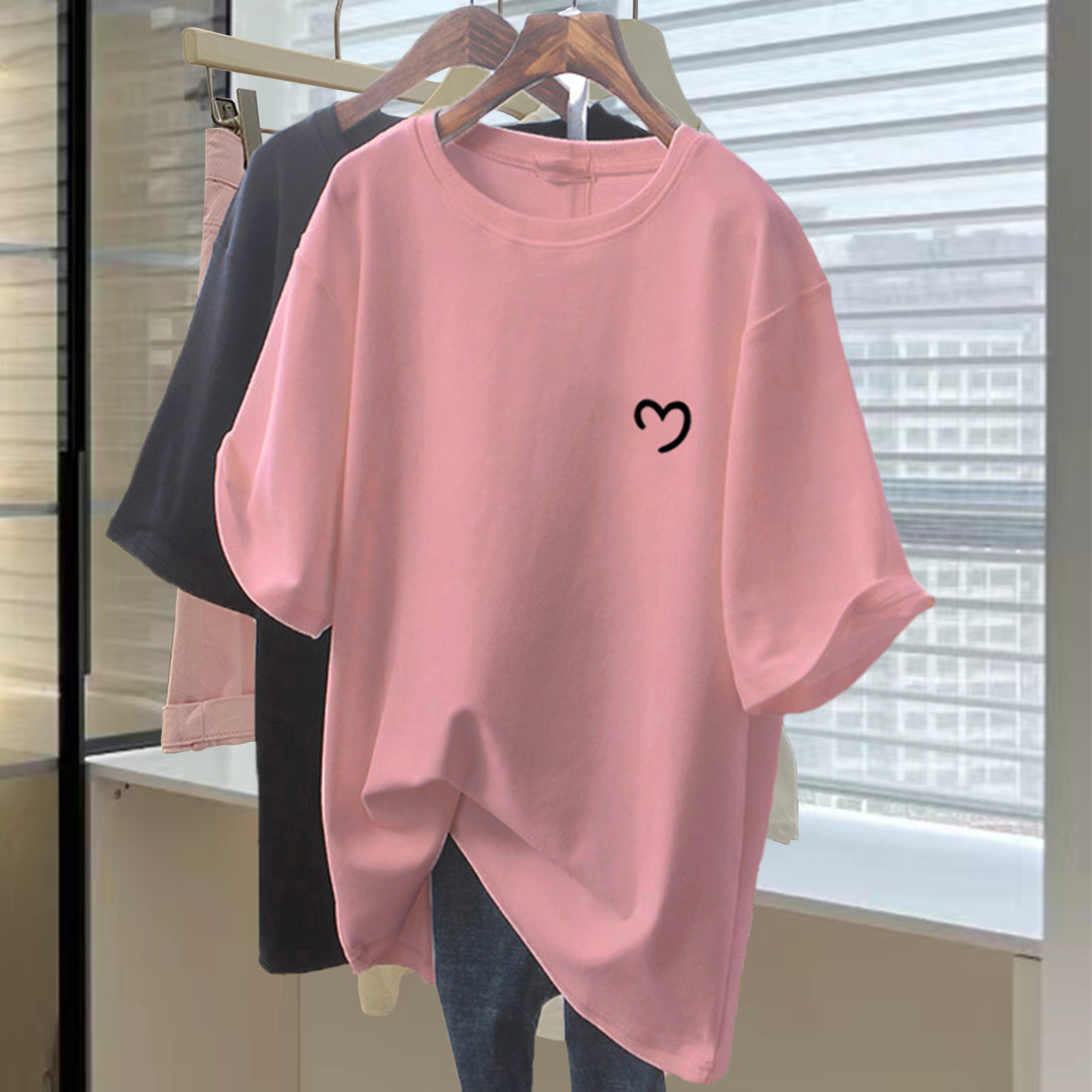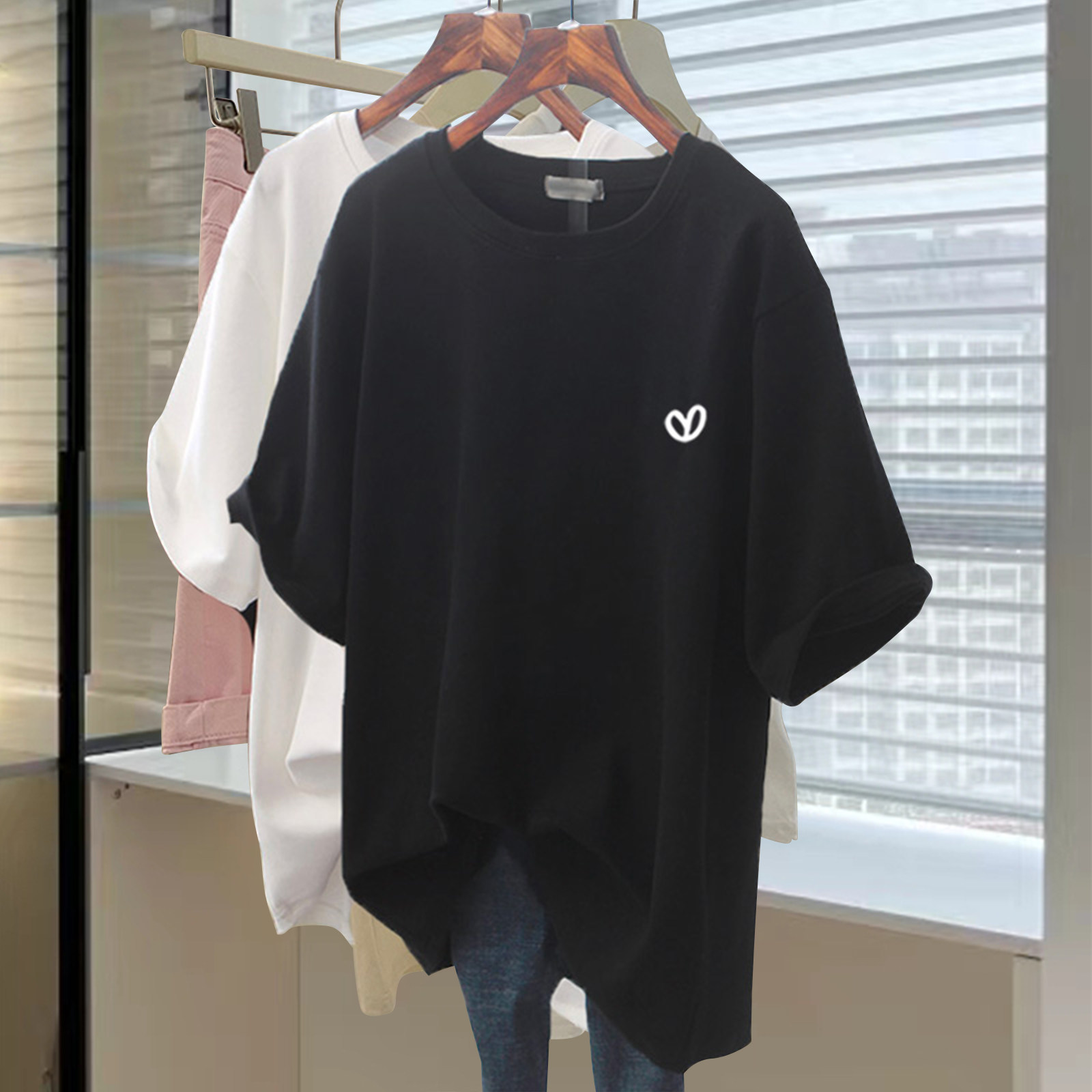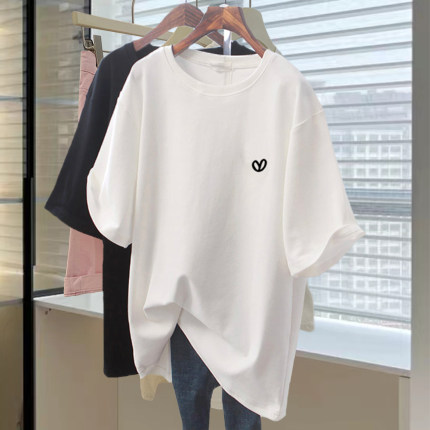 2025新款纯棉短袖t恤女中长款宽松休闲遮屁股粉色上衣打底衫夏季