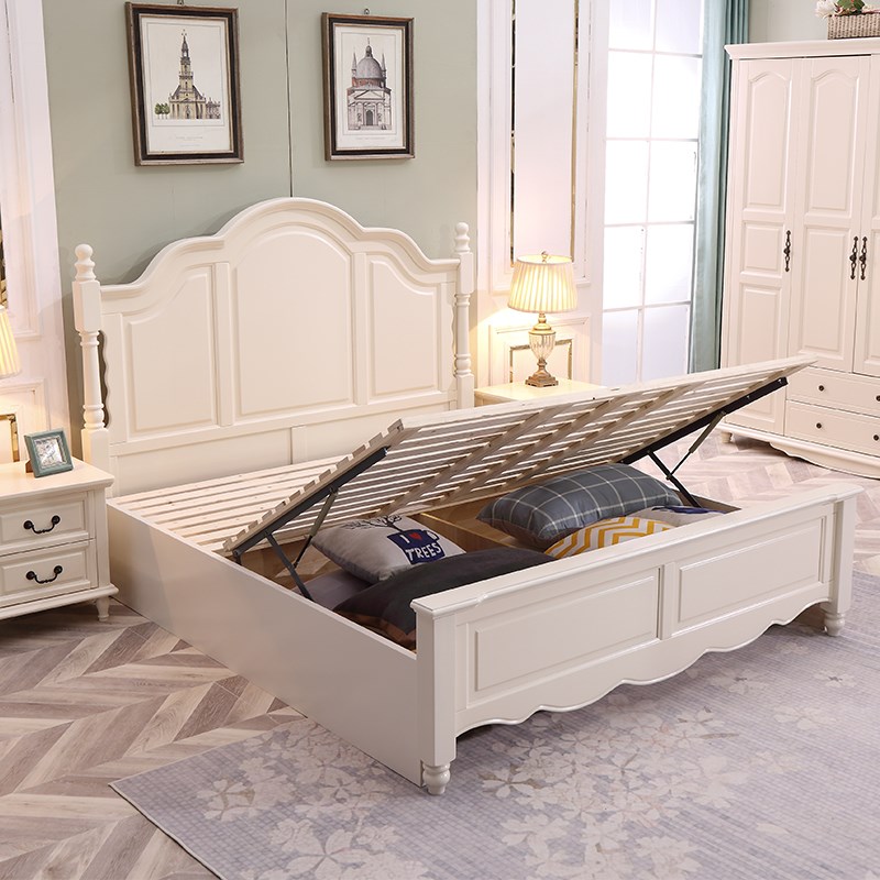 美式乡村全实木床1.8米主卧田园双人床现代简约发式高箱储物婚床