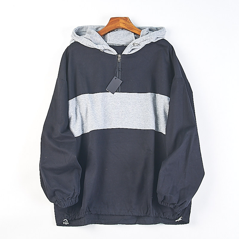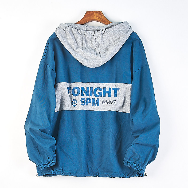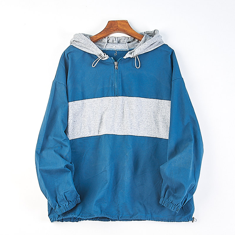 韩版休闲时尚连帽卫衣男女生3.11H81329春秋宽松拼色套头夹克外套