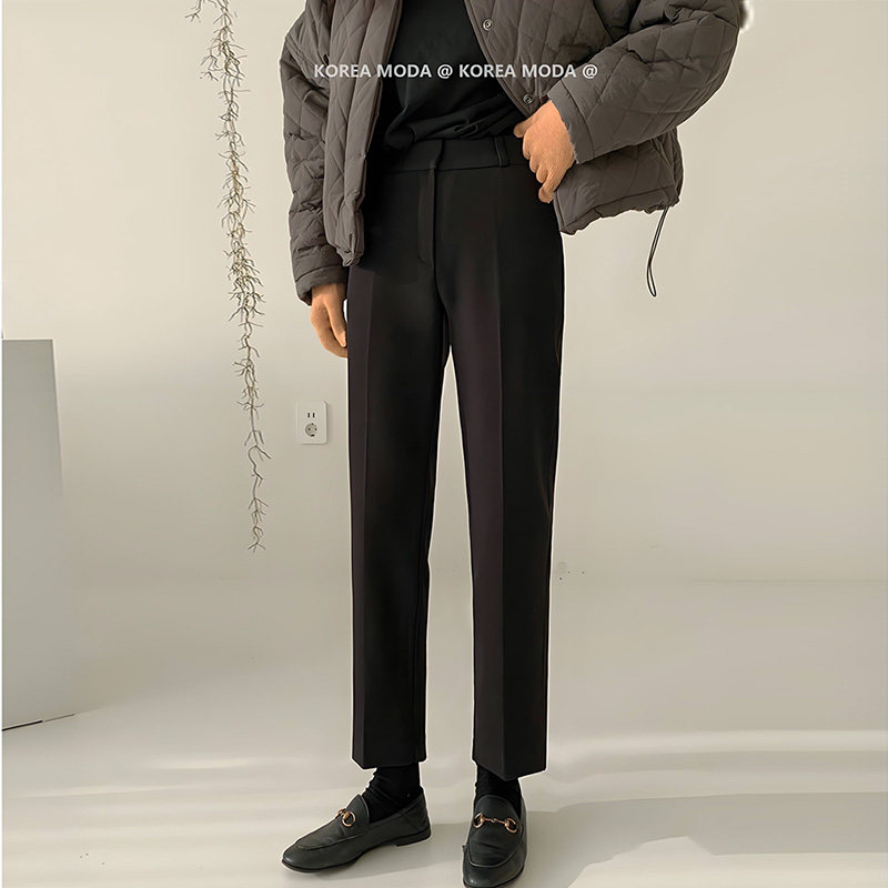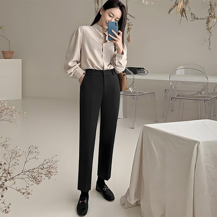 秋冬加绒西装裤女九分高腰直筒西裤职业休闲加厚小个子烟管裤子
