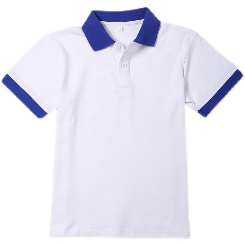 中小学生校服夏季男女藏青白色翻领短袖T恤儿童polo衫中大童班服