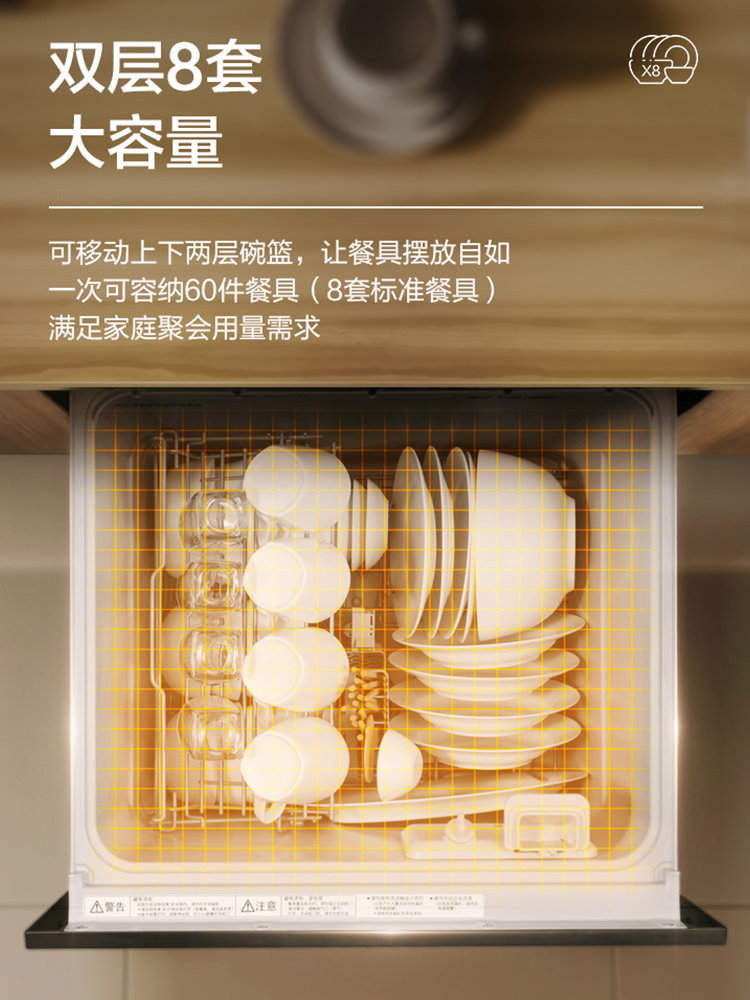 松下洗碗机嵌入式家用8套抽屉式全自动杀菌烘干智能刷碗机6R5