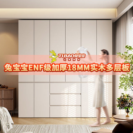 兔宝宝衣柜家用卧室现代简约分段式大衣橱实木多层板ENF收纳衣橱