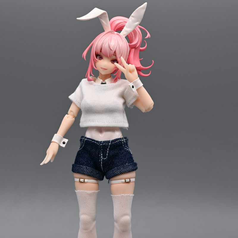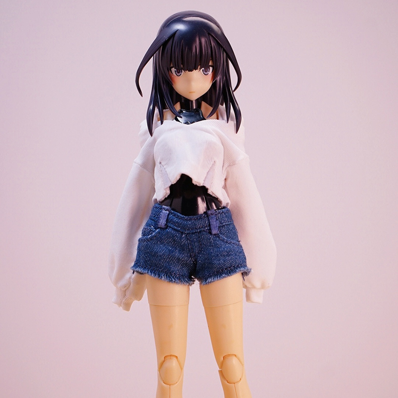 1/12兵人配件机娘衣服6寸figma女素体bjd娃衣超短牛仔短裤T恤热裤