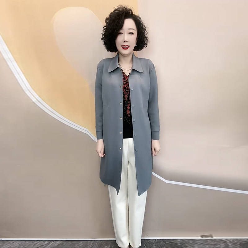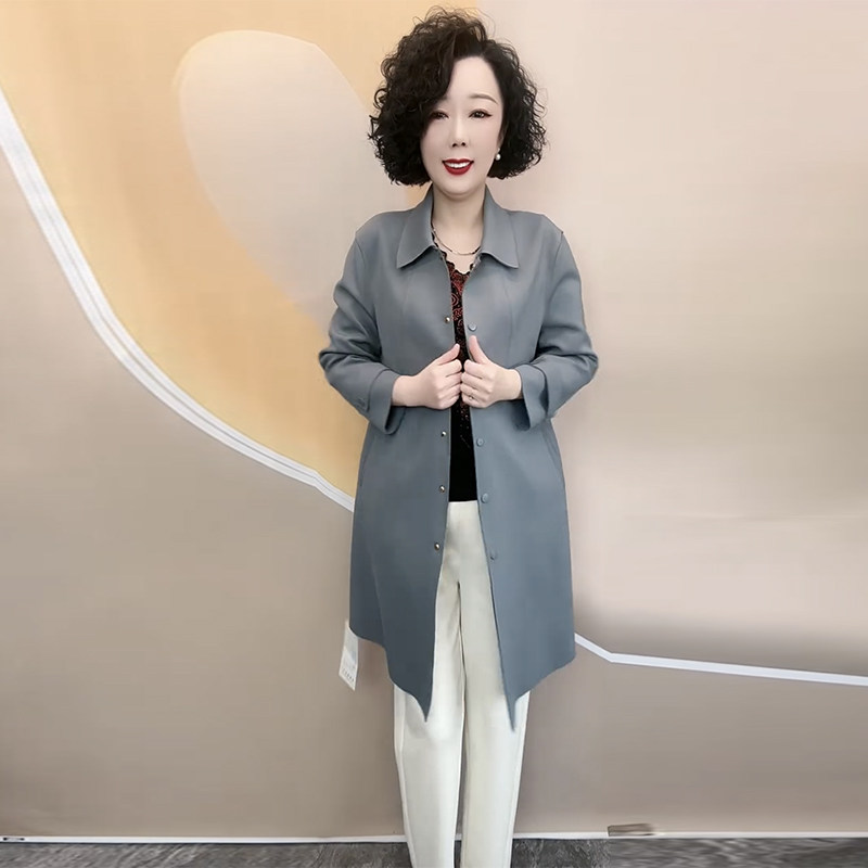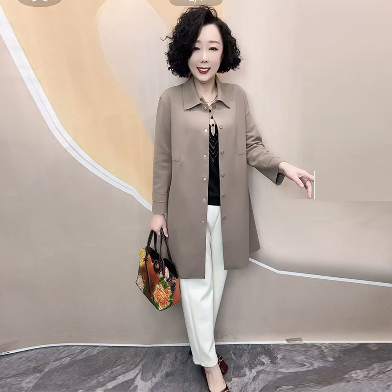时尚中老年妈妈空气棉风衣春装新款宽松大码中长款翻领减龄外套女