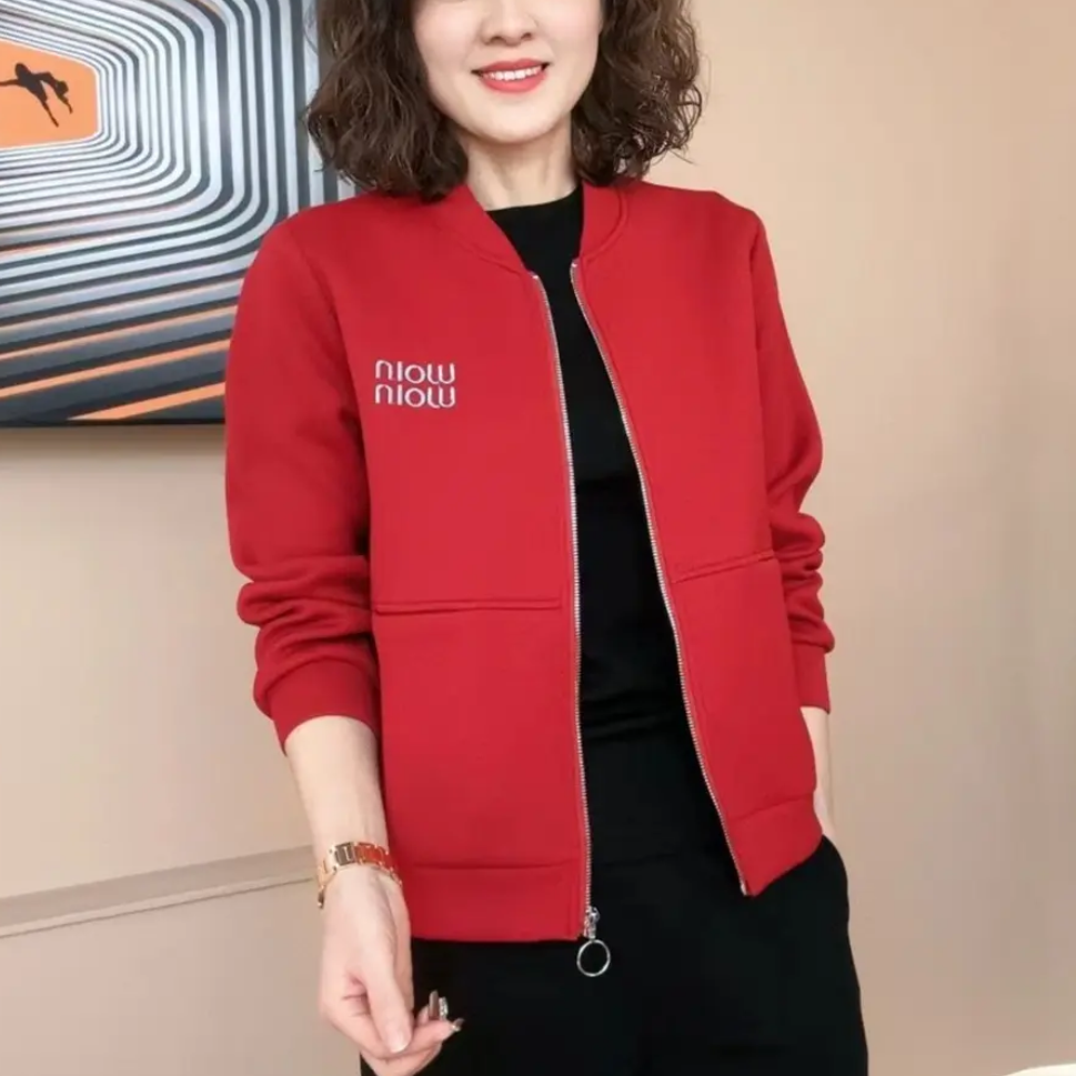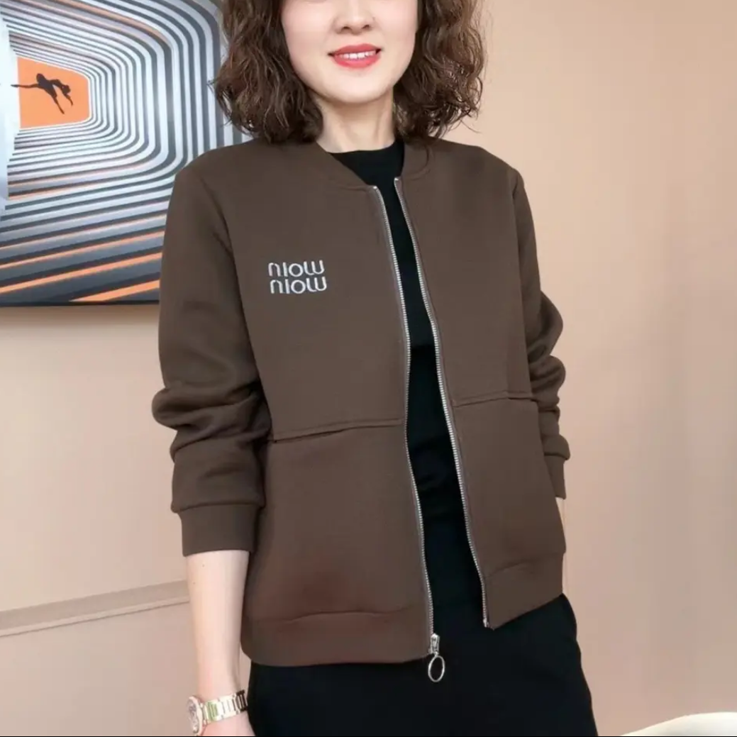 春季新款刺绣棒球服外套气质百搭显瘦减龄拉链衫时尚洋气纯色上衣