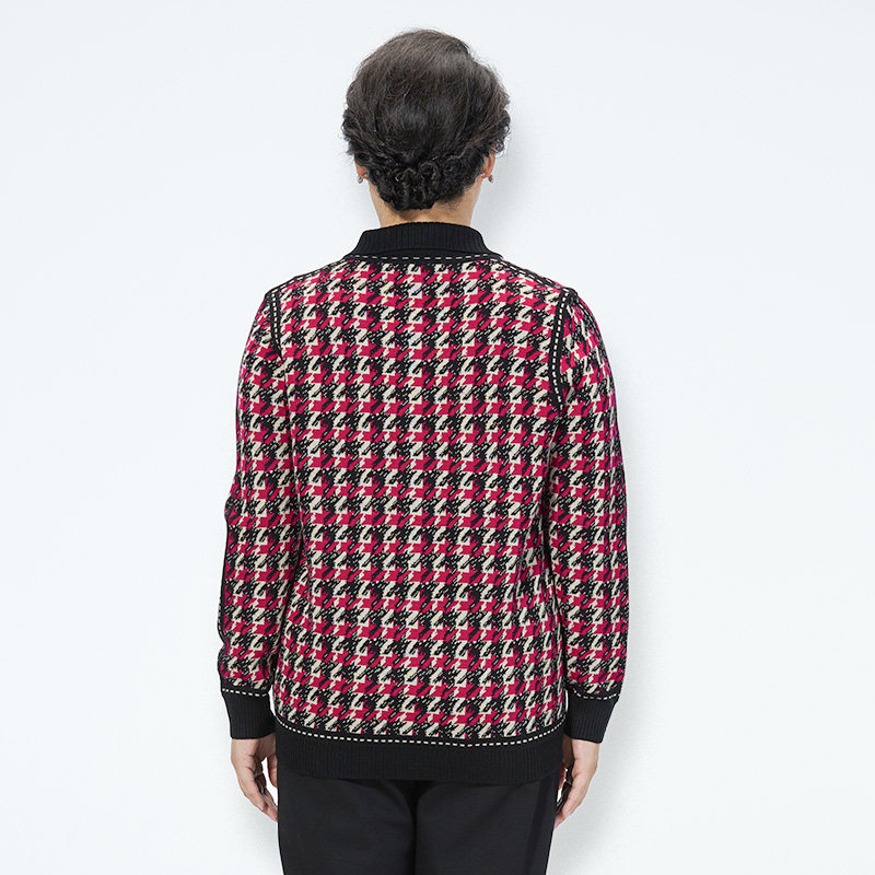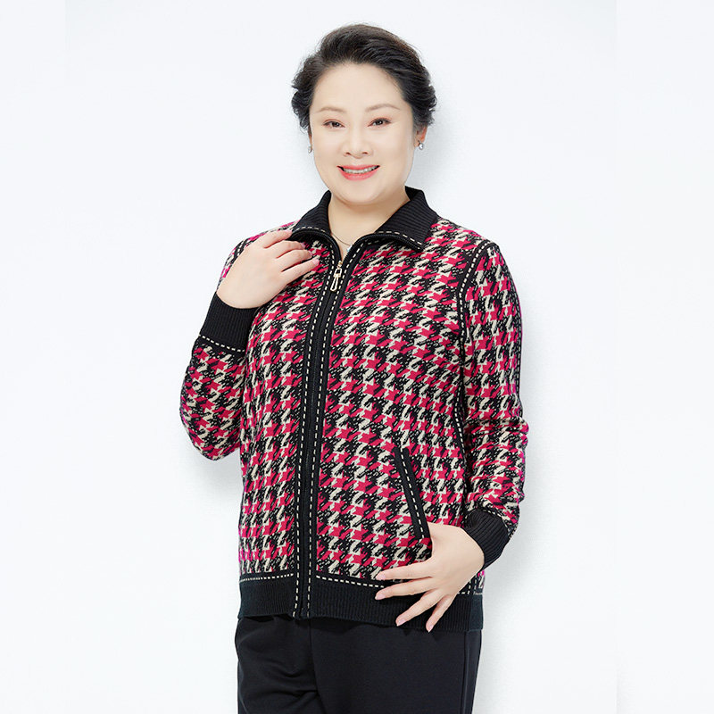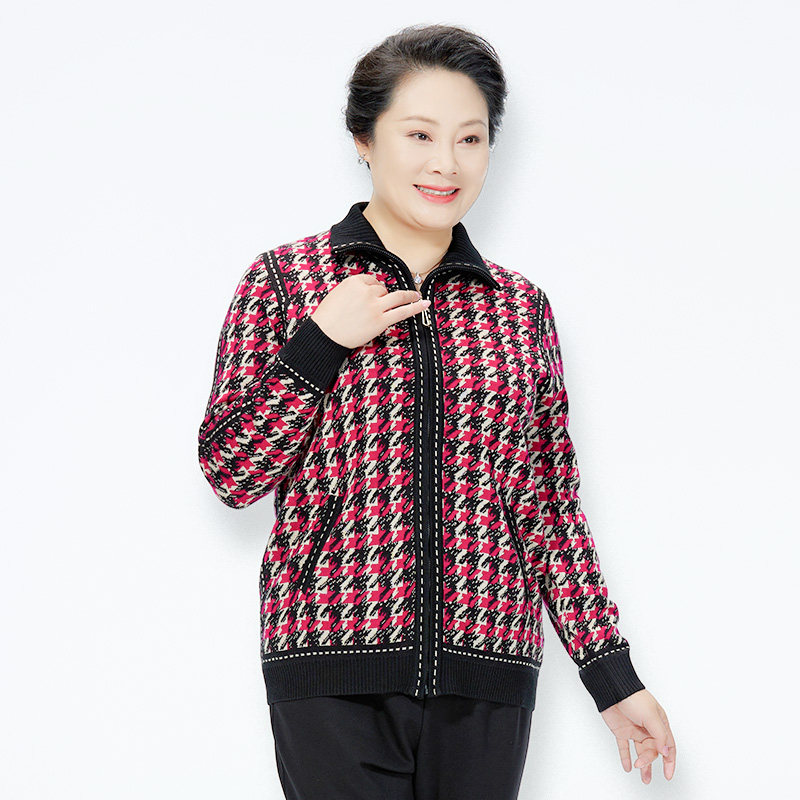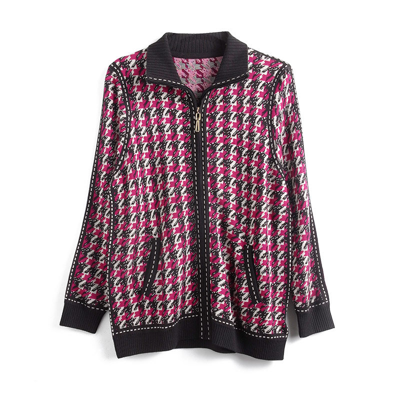 胖太太大码女装秋冬新品时尚千鸟格休闲立领针织外套623304410