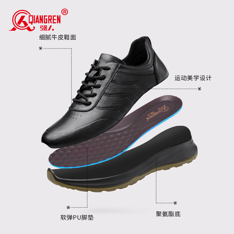 3515强人时尚休闲皮鞋舒适轻便透气软面牛皮鞋简约商务通勤男鞋