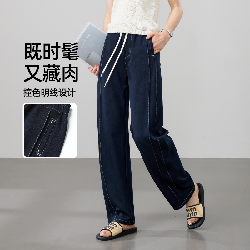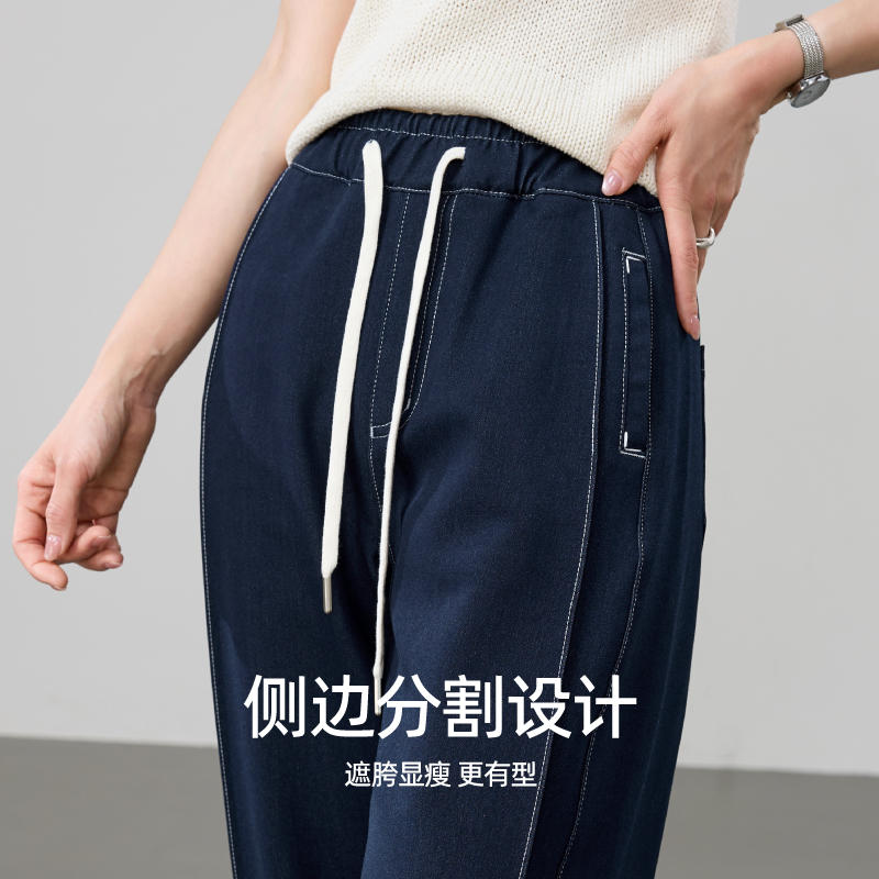逸阳仿牛仔窄版香蕉裤女2025年夏新款高腰显瘦百搭休闲蓝色通勤裤