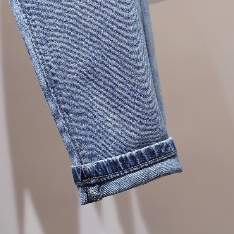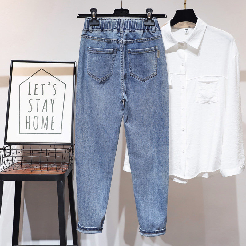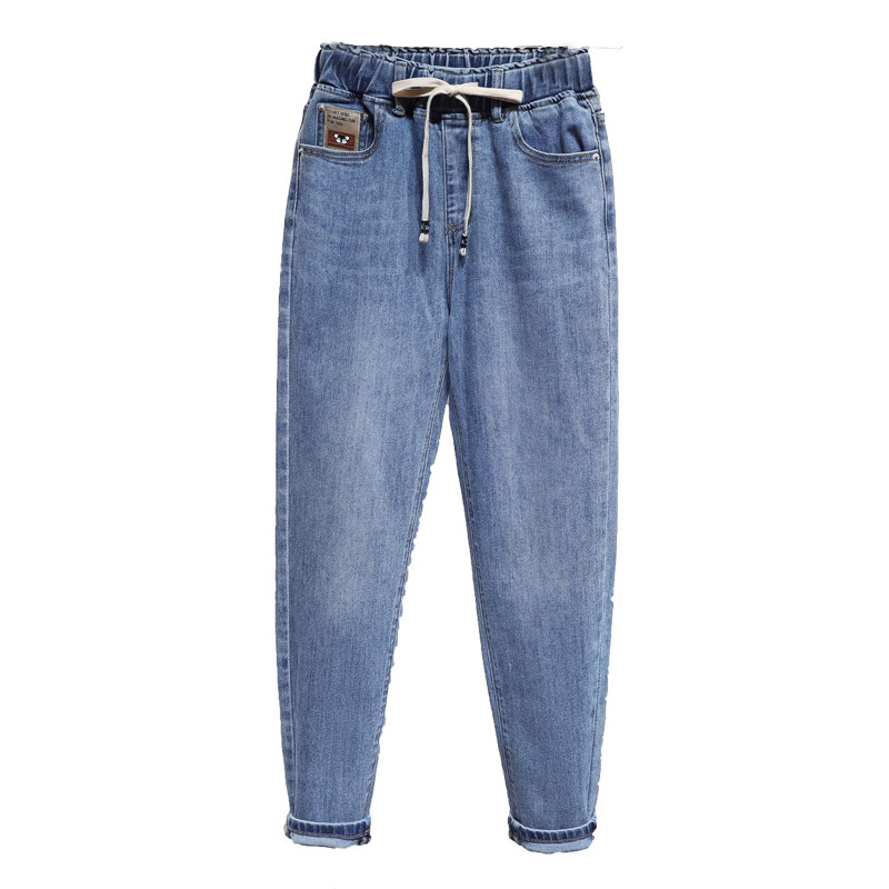 大码松紧腰牛仔裤女梨形身材显瘦裤子胖mm胯大腿粗宽松高腰哈伦裤