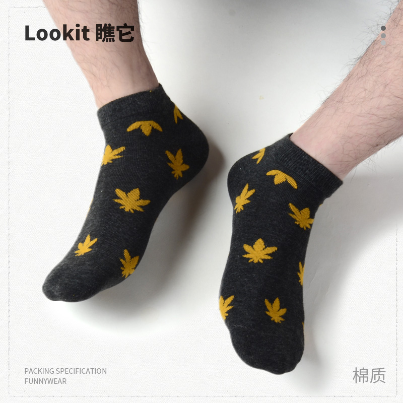 盒装袜子男款春夏季短袜潮流条纹运动风棉袜韩版日系树叶图案学生
