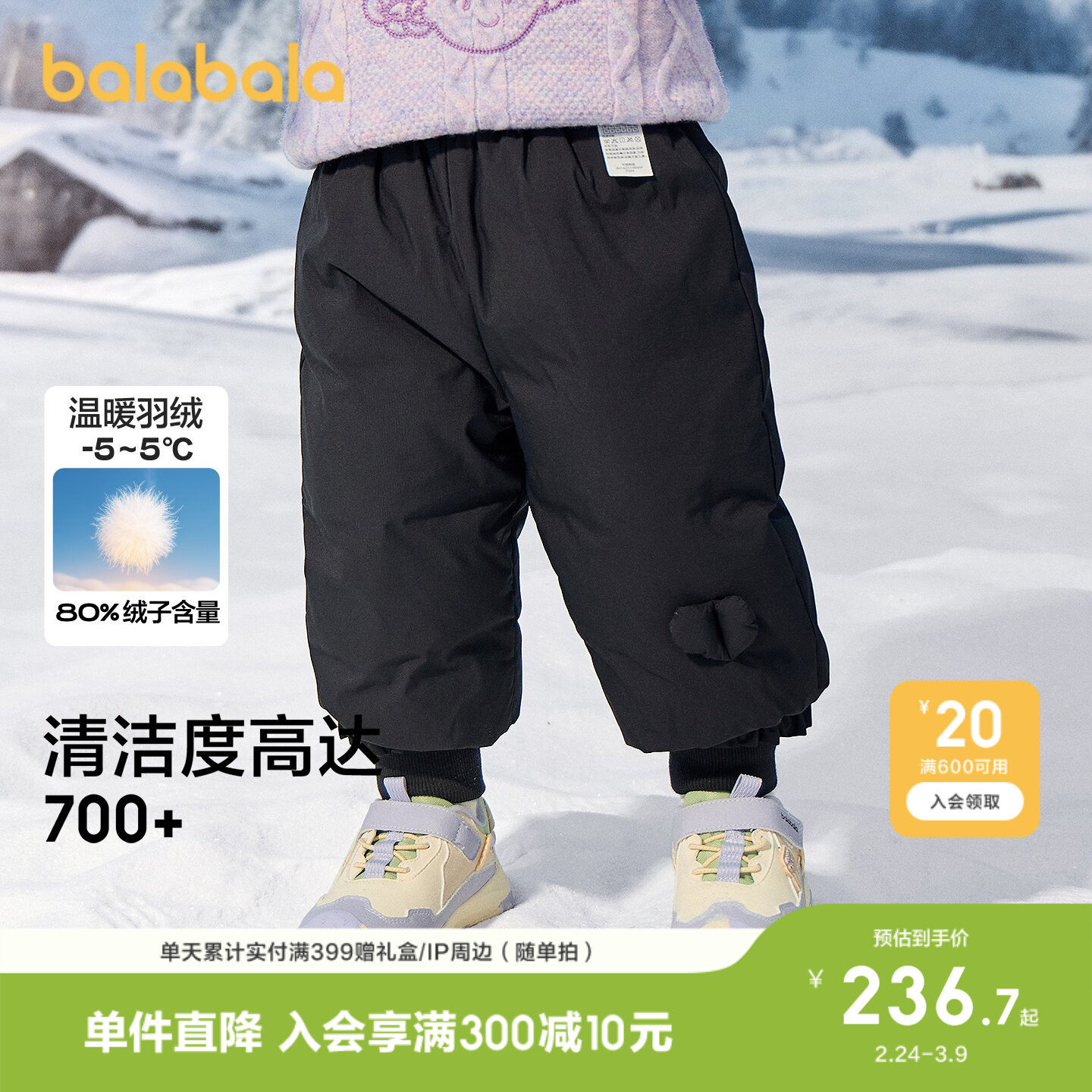 【商场同款】巴拉巴拉宝宝长裤男女儿童羽绒裤2026休闲冬装保暖裤