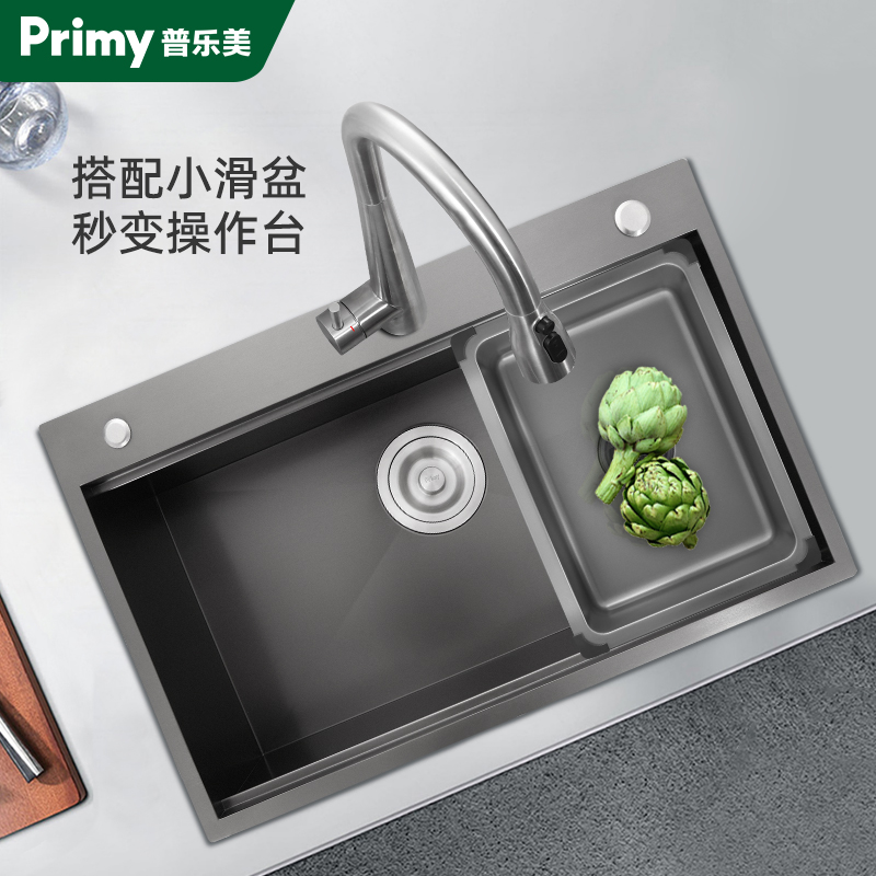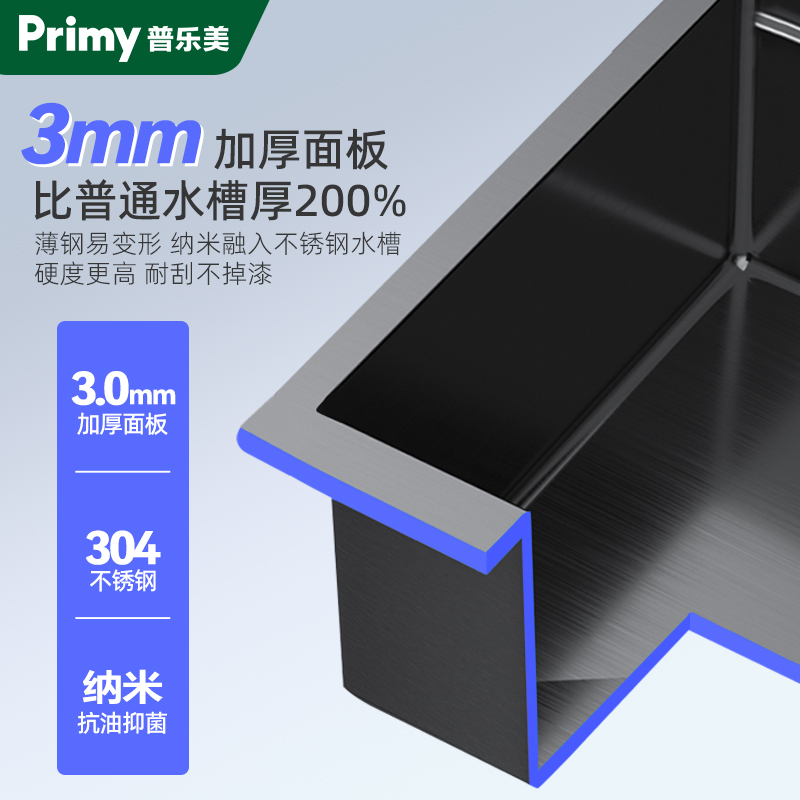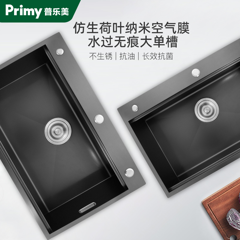 普乐美水槽黑钛纳米手工槽304不锈钢厨房易洁洗碗槽洗菜盆台下盆