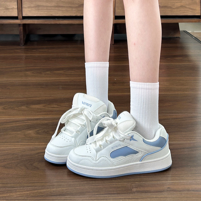 易少年 美式复古板鞋女厚底面包鞋学生运动鞋2025秋季新款小白鞋