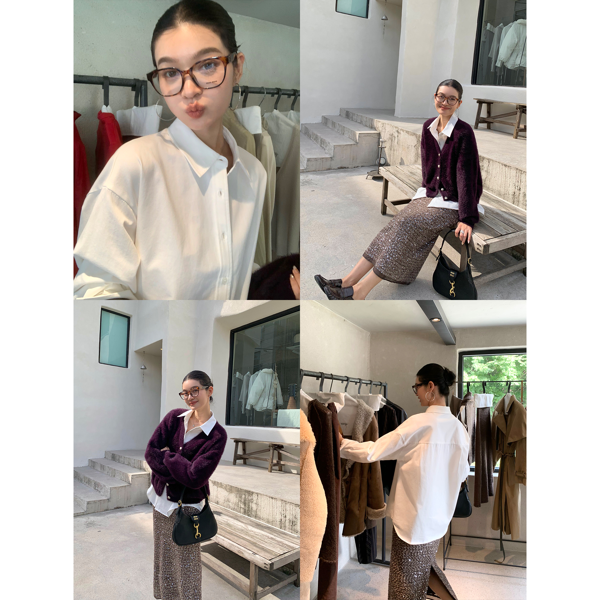 pusumede 控场智感 翻领条纹衬衫女白色宽松休闲衬衣叠穿长袖上衣