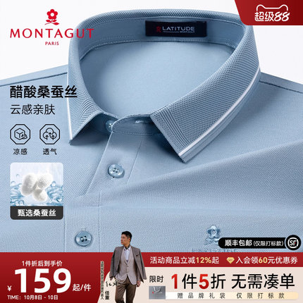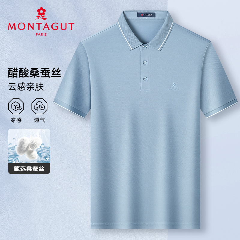 [醋酸桑蚕丝]梦特娇夏季男士Polo衫短袖商务翻领丝光T恤凉感亲肤J