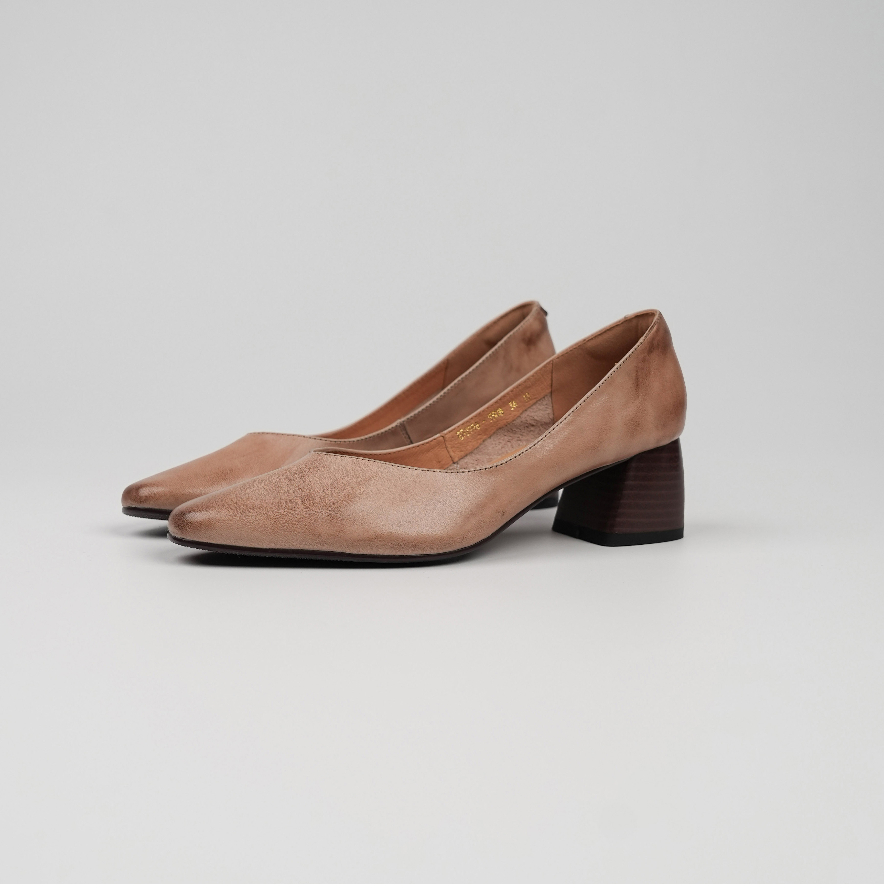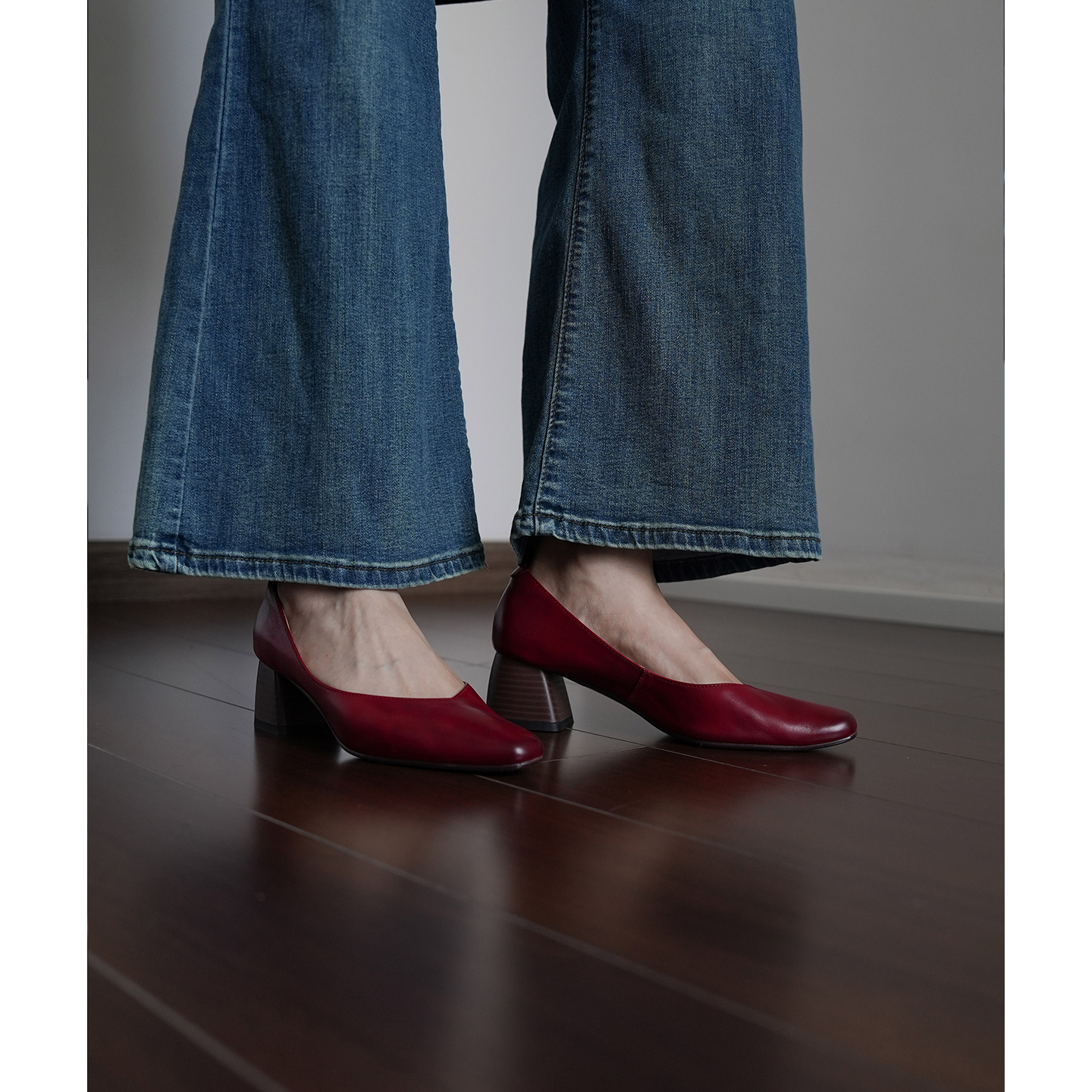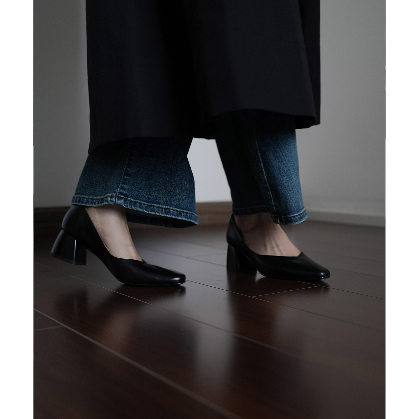 Fermina 秋季新款浅口单鞋女粗跟中跟法式复古通勤风女鞋软面牛皮