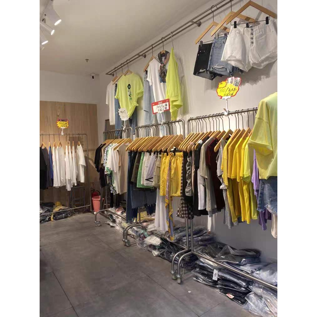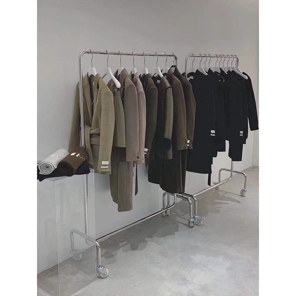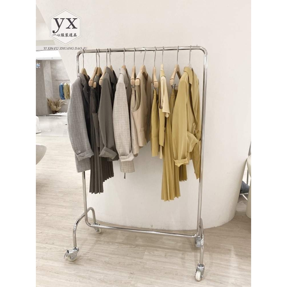 服装店展示架女装店不锈钢货架衣服架子落地式移动挂衣杆银色带轮