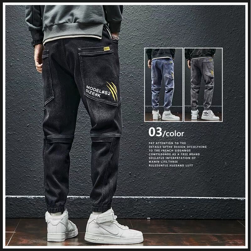 青少年男孩牛仔裤初中学生松紧腰帅气大童长裤休闲秋冬季加绒裤子