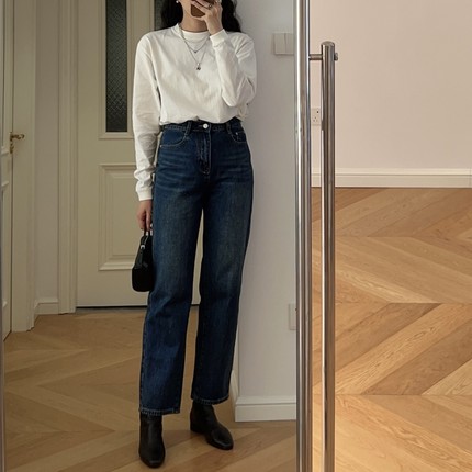 秋冬新款 港风中高腰牛仔裤小直筒阔腿裤 0.65KG