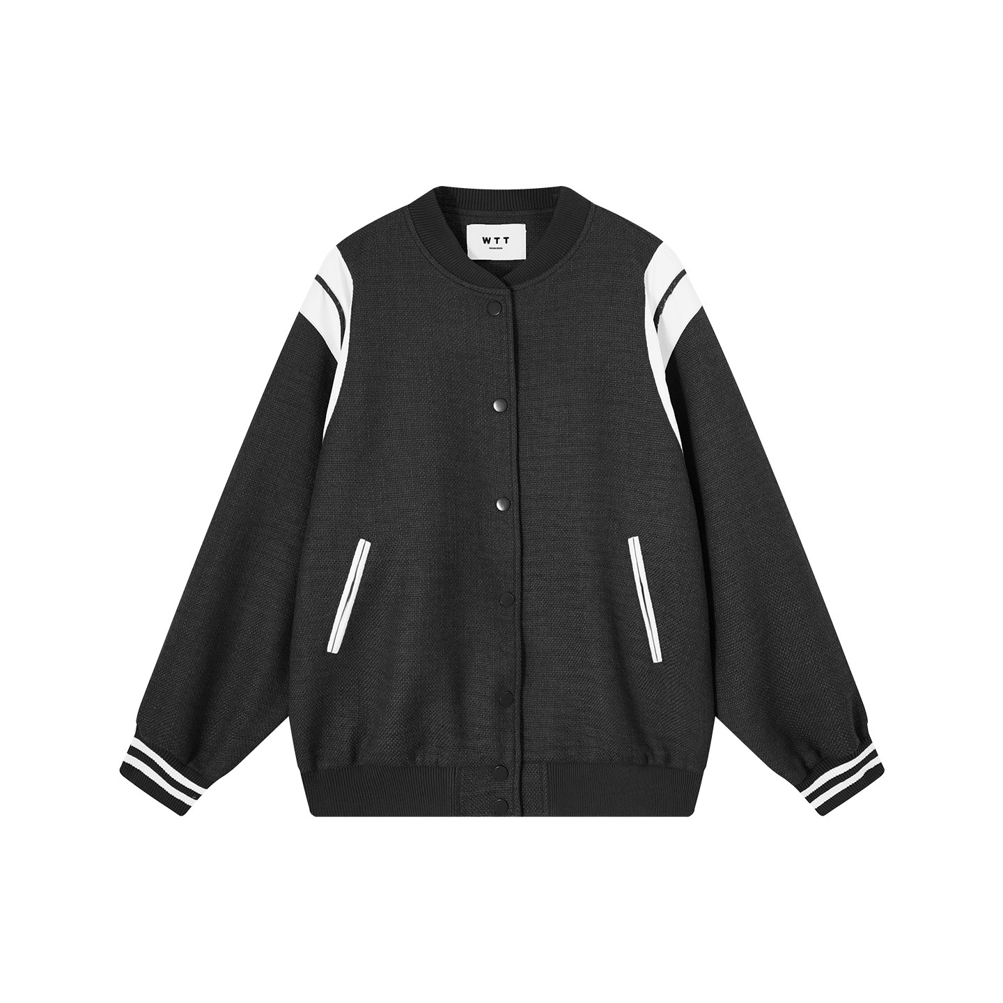 吴童童复古撞色立领长袖棒球服