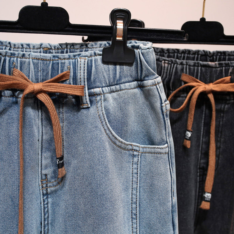 大码加绒牛仔裤女胖MM加厚妈妈裤子显瘦胯宽大腿粗高腰宽松哈伦裤
