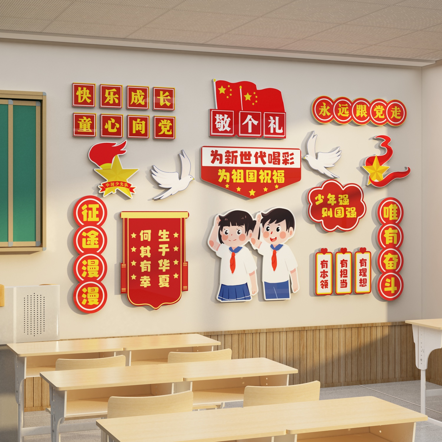 班级文化墙贴布置教室装饰爱国教育红色主题环创国庆节氛围黑板报