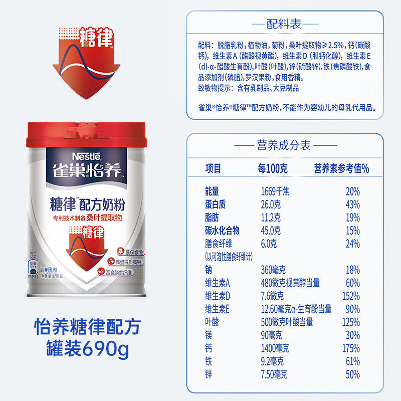 雀巢怡养糖律中老年奶粉可选低GI高蛋白高钙营养奶粉