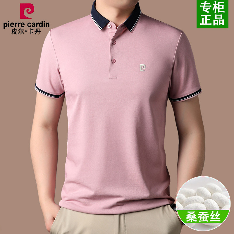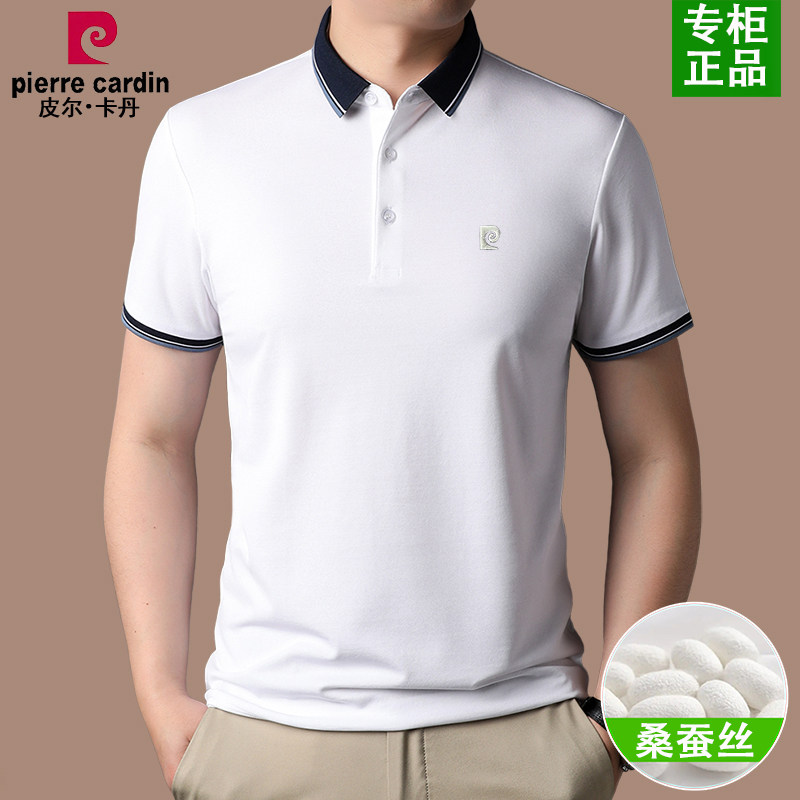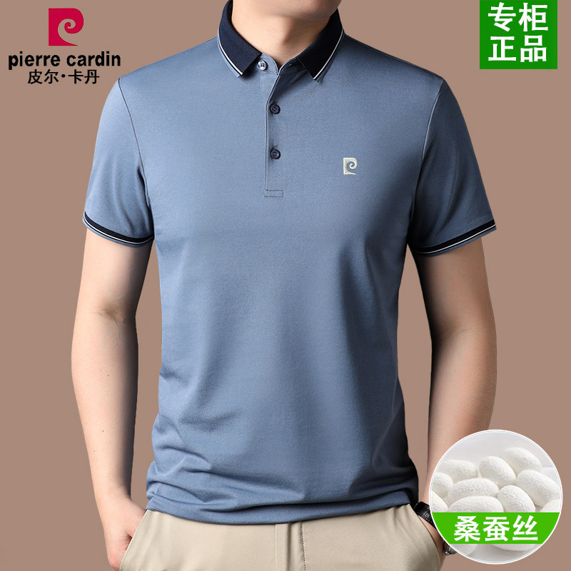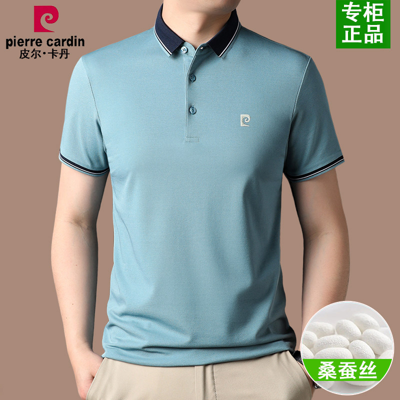皮尔卡丹夏季桑蚕丝短袖T恤男中年商务休闲爸爸装冰丝翻领POLO衫