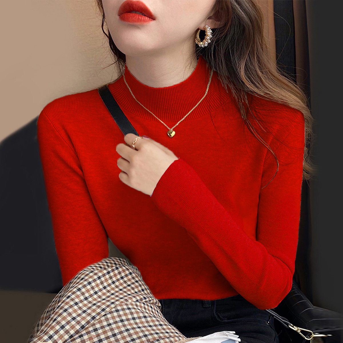半高领针织衫女内搭秋冬别致绿色打底衫洋气毛衣2025新款中领上衣