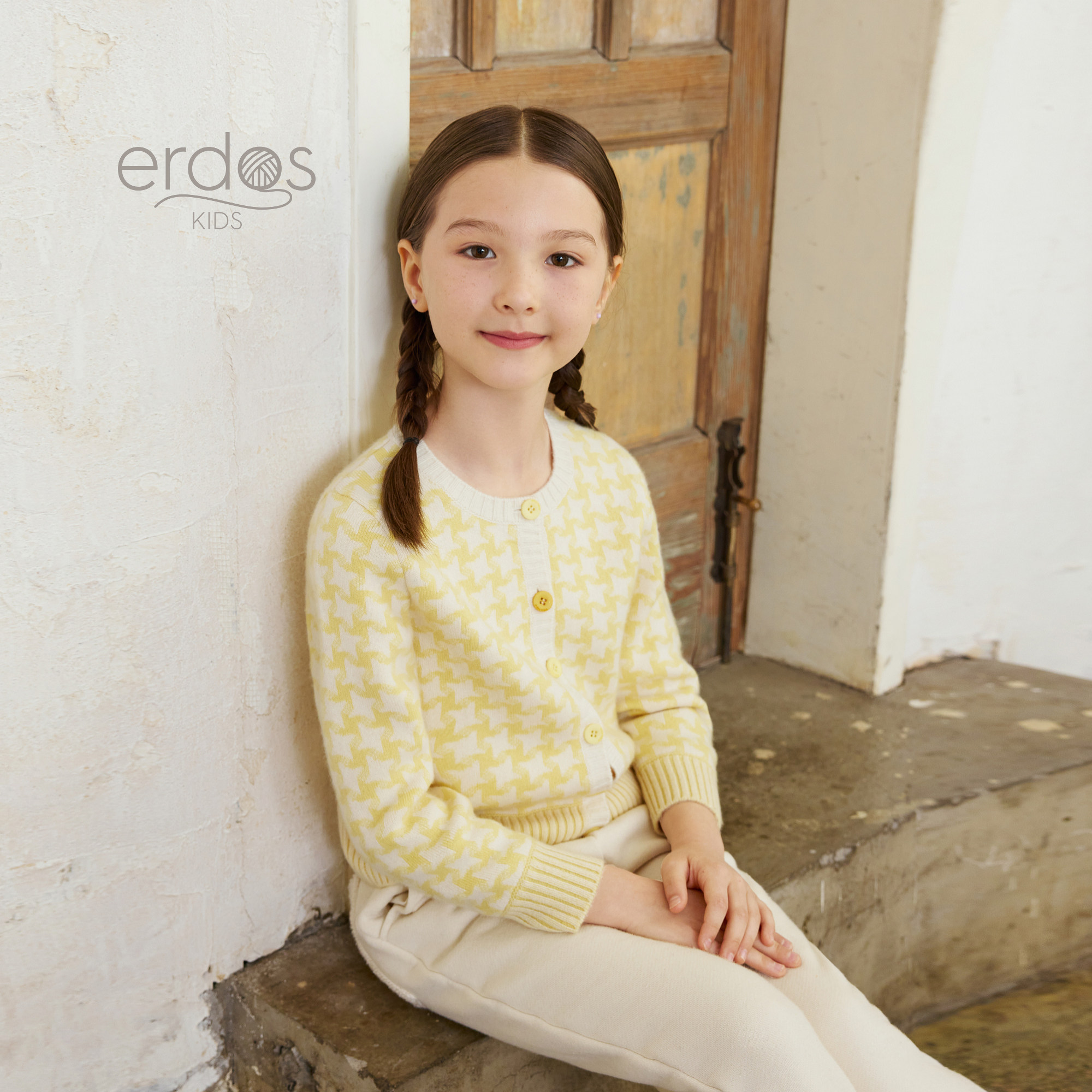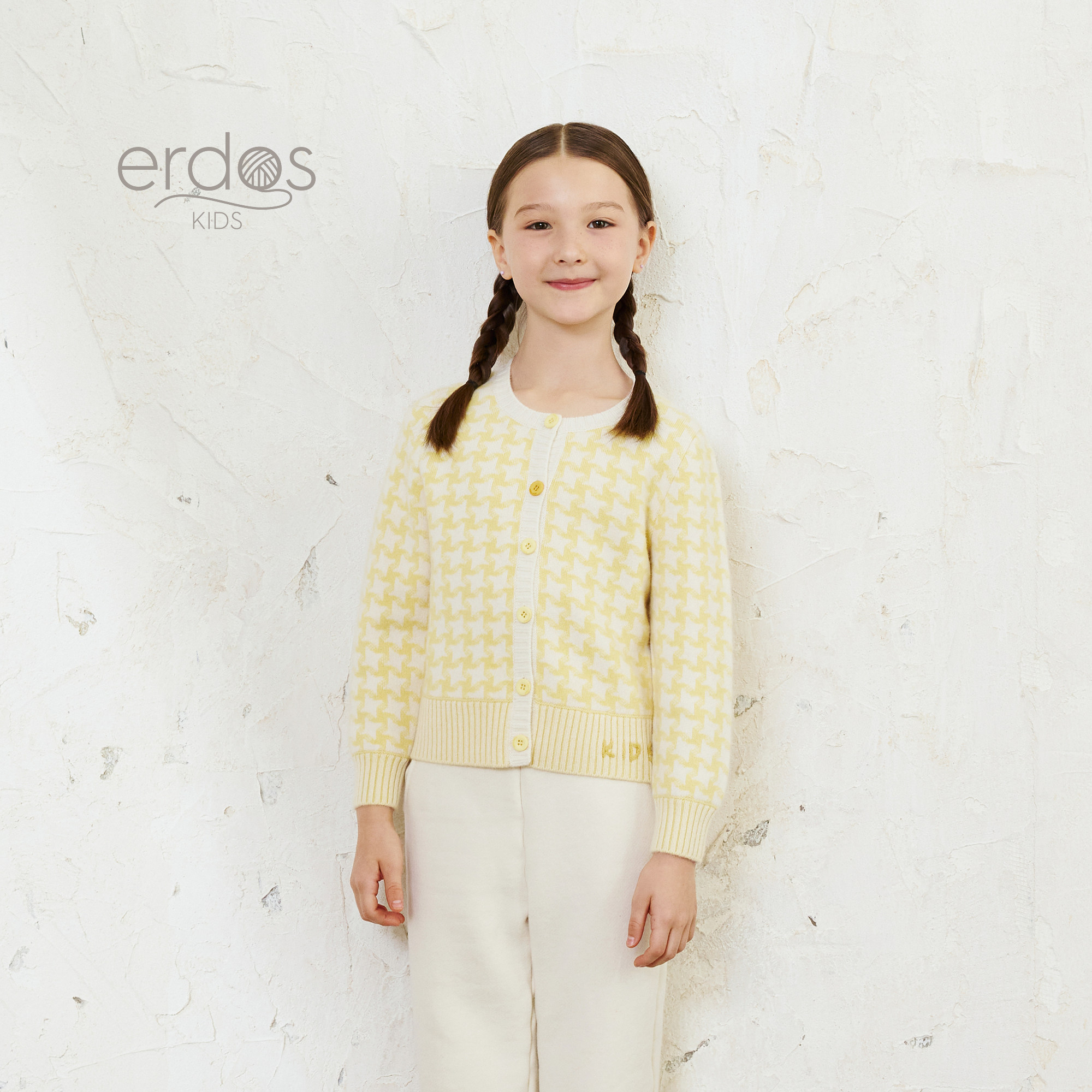 【100%山羊绒】 鄂尔多斯童装25秋冬新品圆领装饰双提儿童开衫
