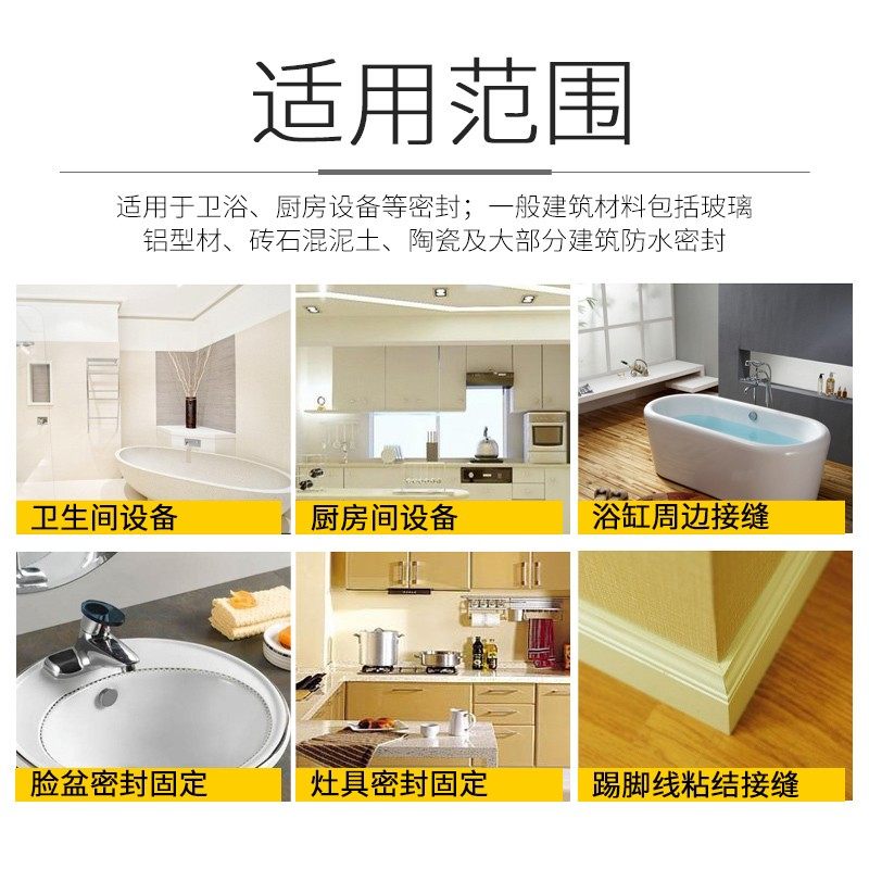 百得玻璃胶防水防霉厨卫家用中性密封胶透明瓷白长效防霉硅胶