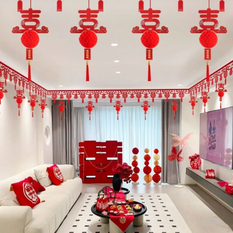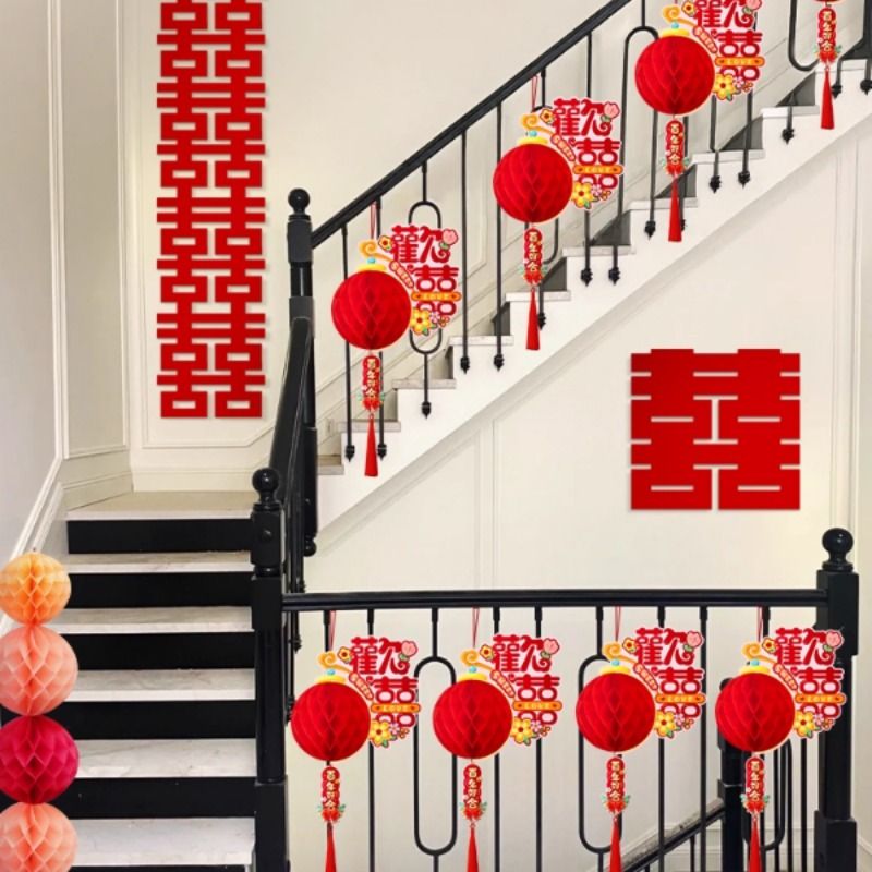 结婚房卧室门把手挂件入户新房门灯笼喜字装饰喜庆高级布置男女方