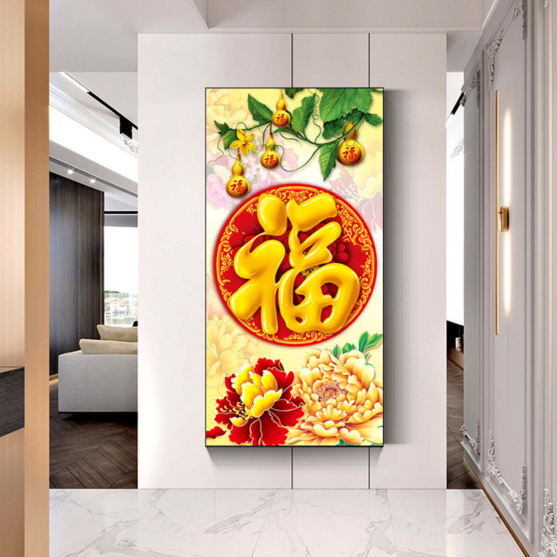 2025年新款钻石画满钻客厅五福临门水晶贴砖5D玄关过道贴钻十字绣