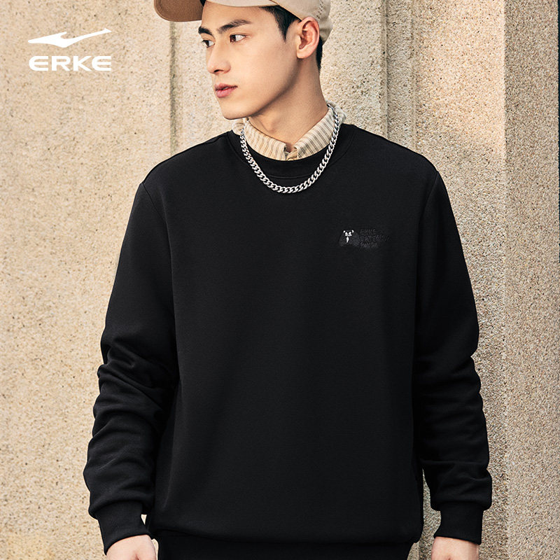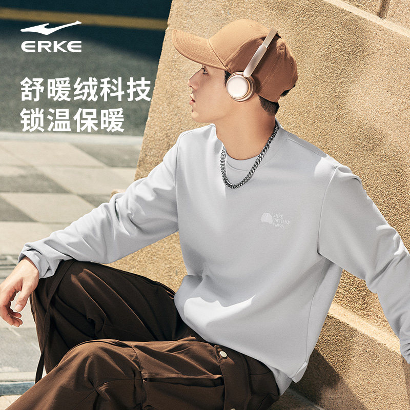 鸿星尔克加绒卫衣2025秋冬新款男士宽松休闲圆领套头长袖男生上衣