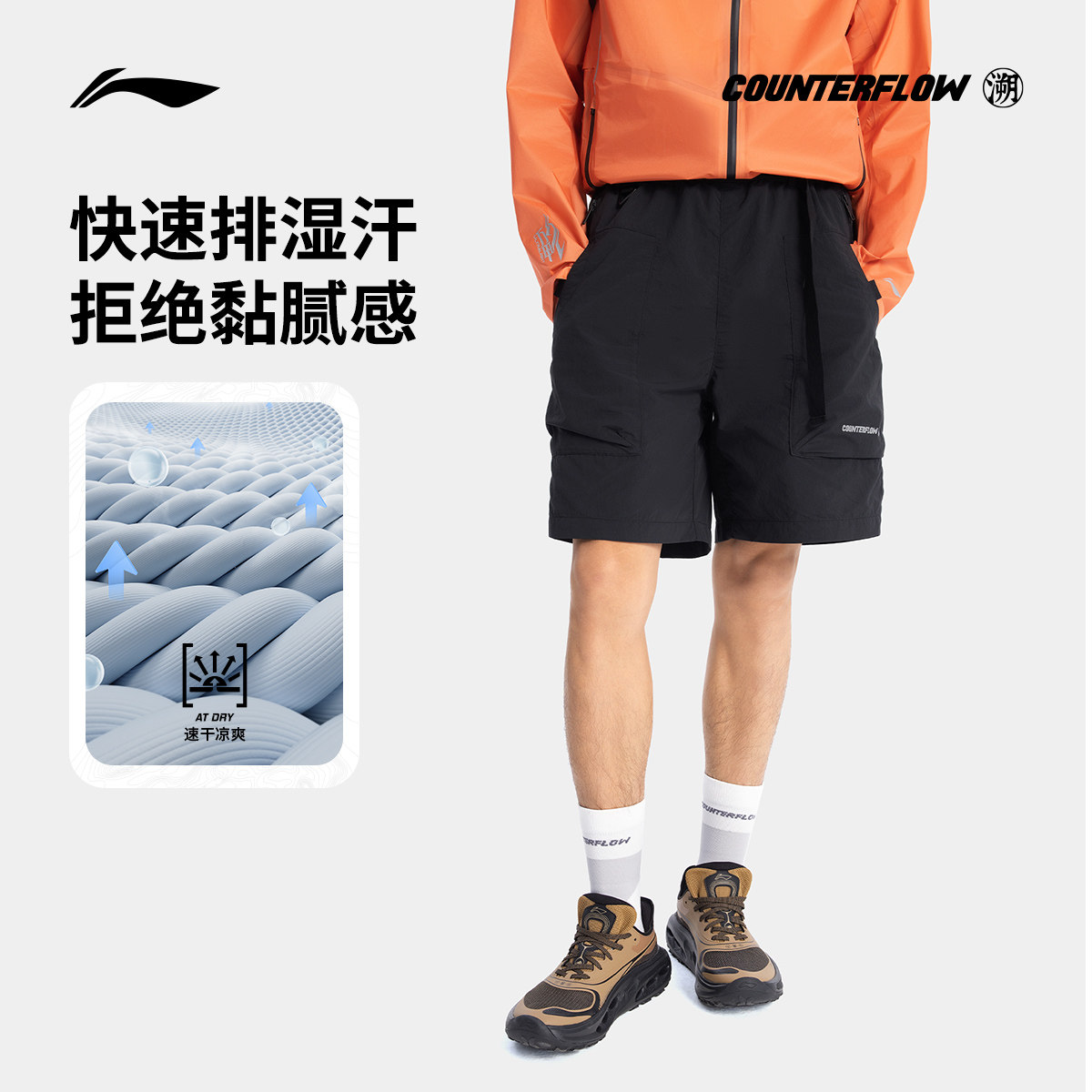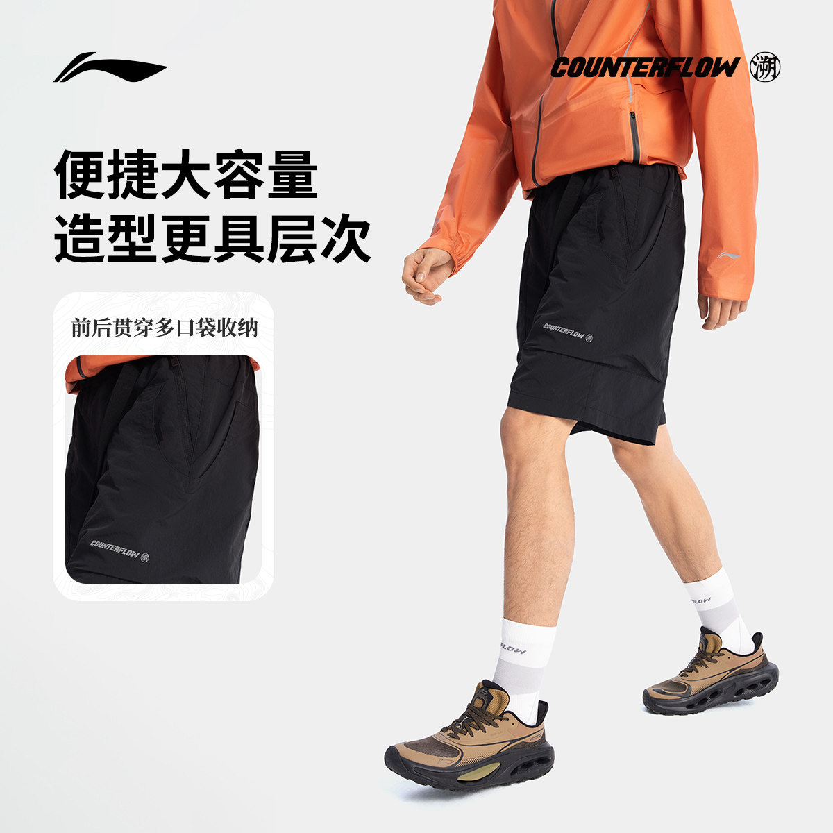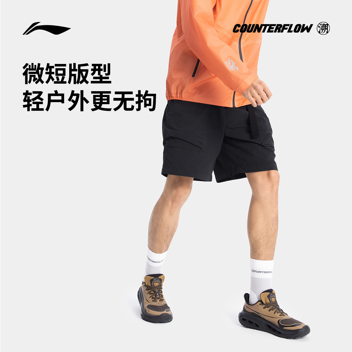 李宁CF溯运动短裤男士 新款户外系列凉爽夏季裤子梭织运动裤