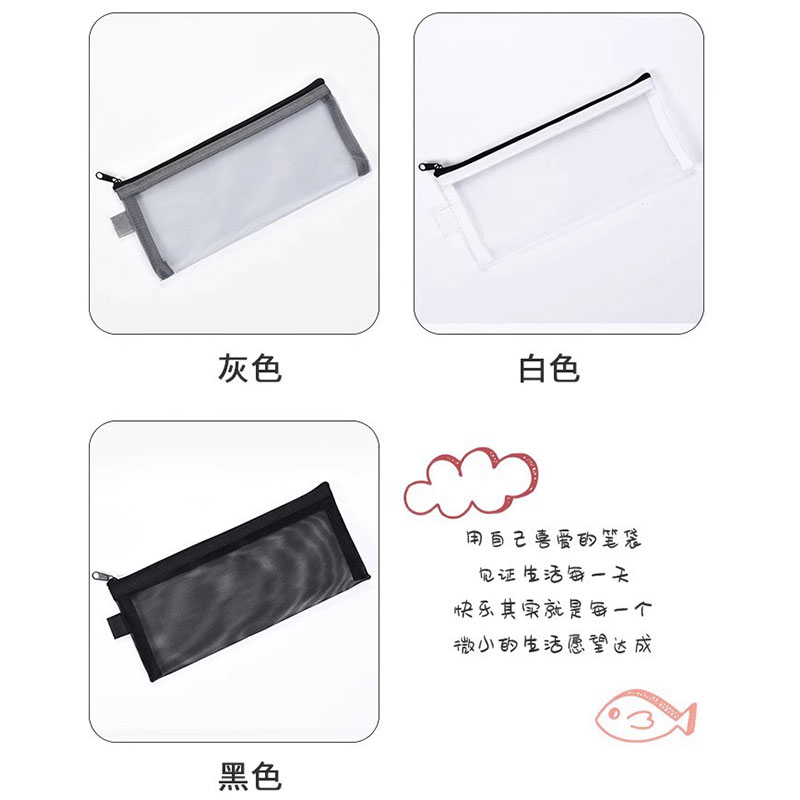 送笔】透明网纱考试笔袋简约收纳袋小学生铅笔盒创意大容量文具盒