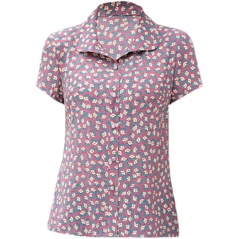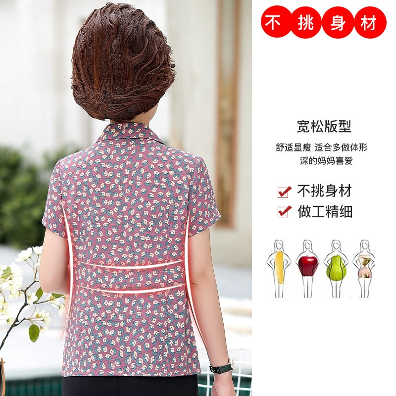 妈妈碎花衬衫短袖上衣夏装新款50岁中年女T恤中老年小衫气质套装