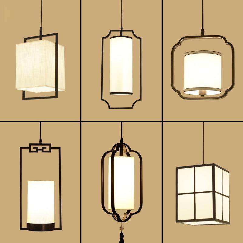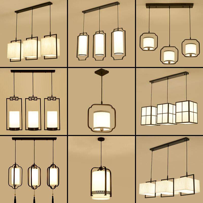 新中式小吊灯铁艺布艺单头中国风吧台餐厅三头吊灯走廊玄关古风灯