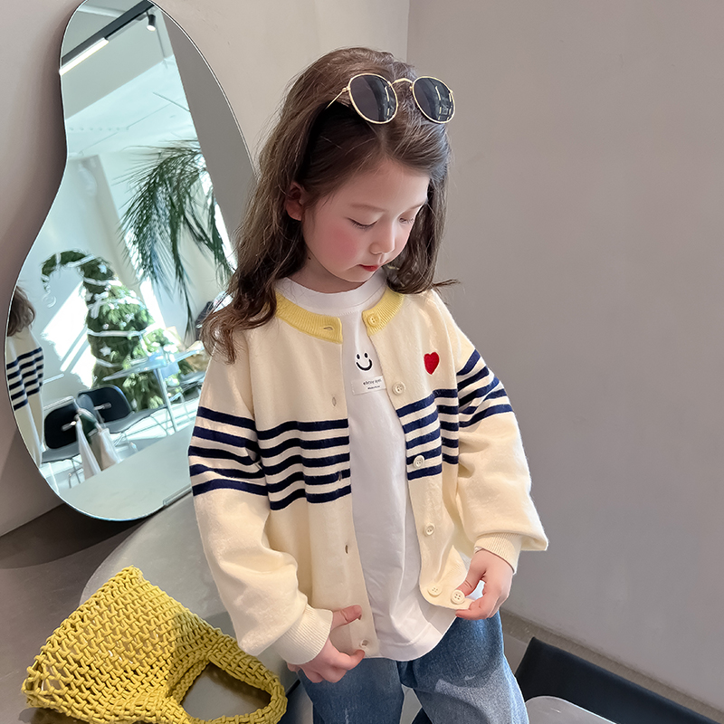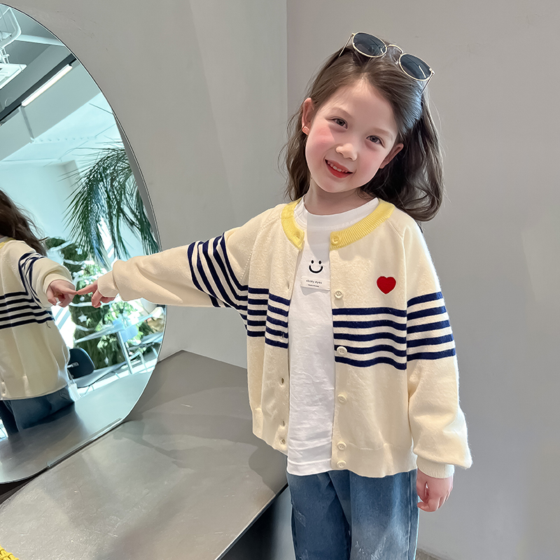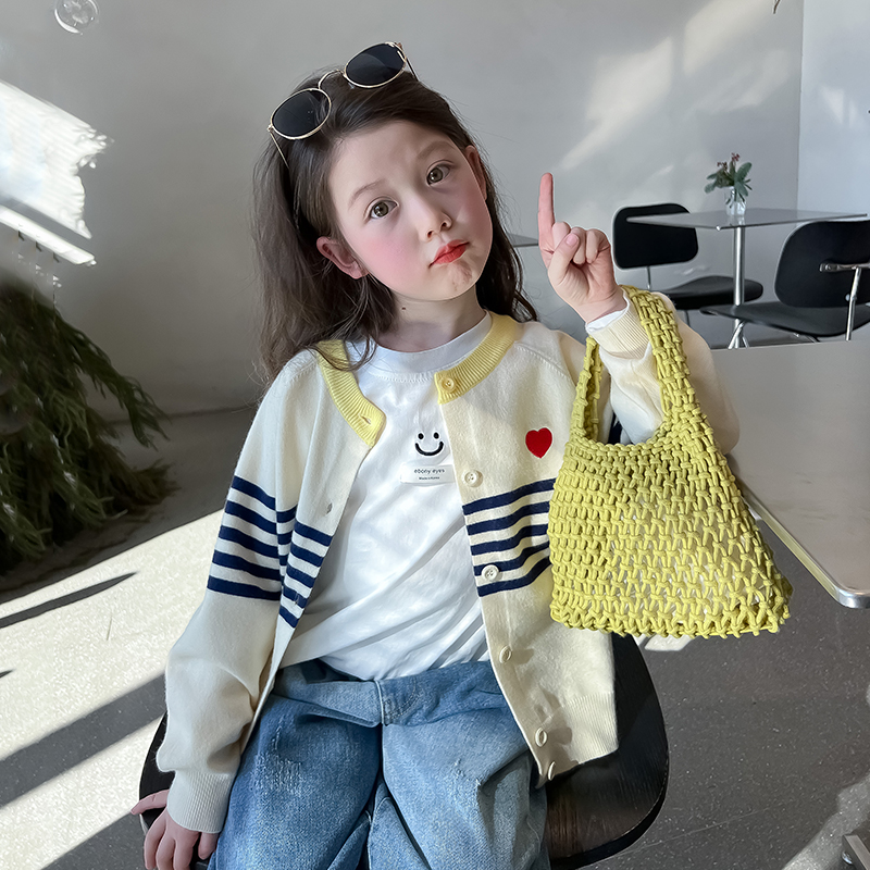 小女孩针织开衫女童白毛衣儿童洋气外套中大童装上衣2025春秋新款