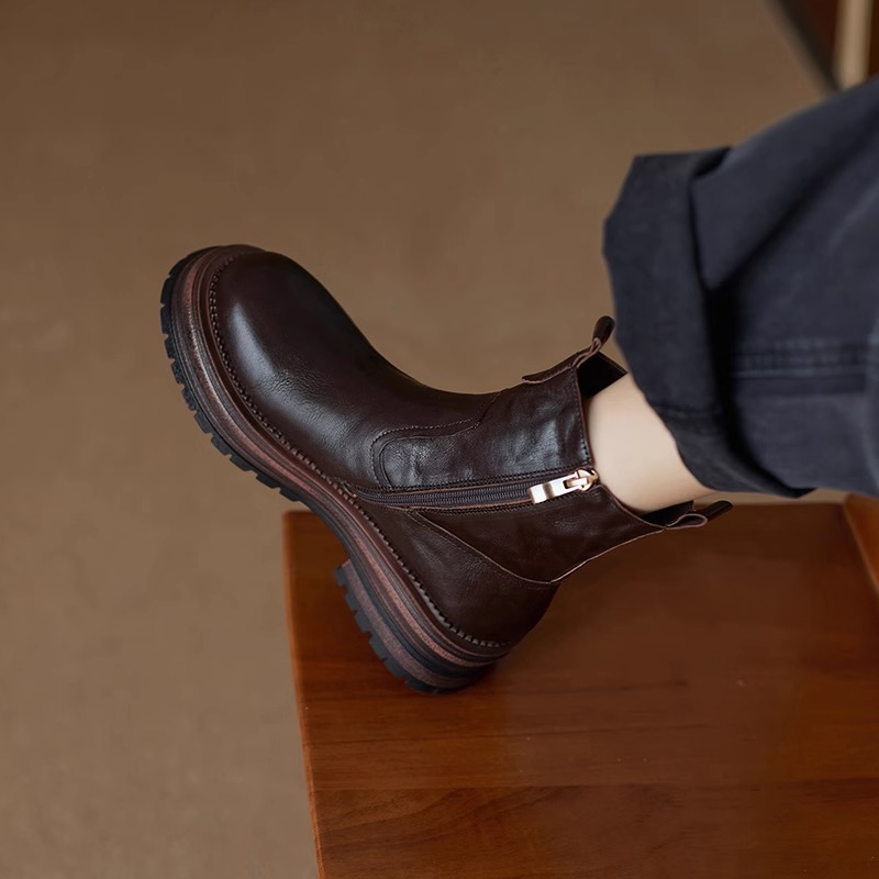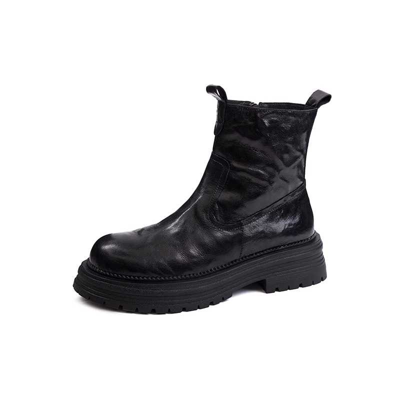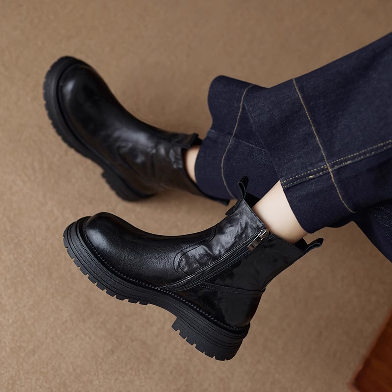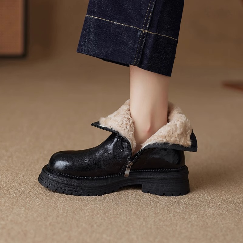 软牛皮厚底羊毛一体雪地靴女2025冬季新款真皮加绒加厚马丁靴短靴