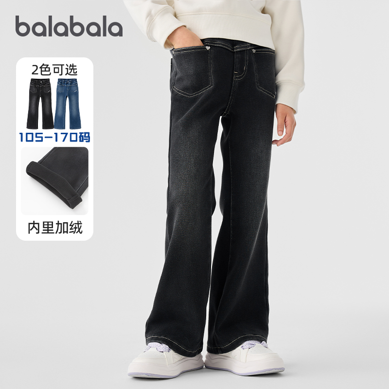 巴拉巴拉女童牛仔长裤儿童加绒裤子冬季新款宝宝舒适喇叭裤童装潮