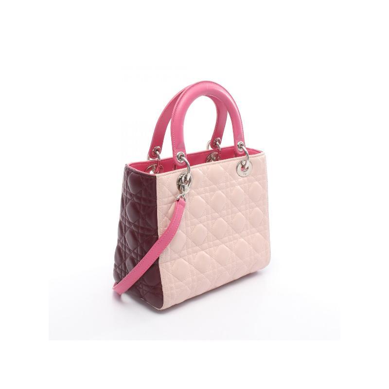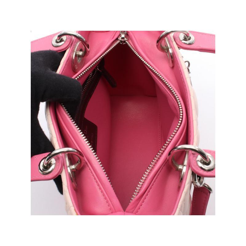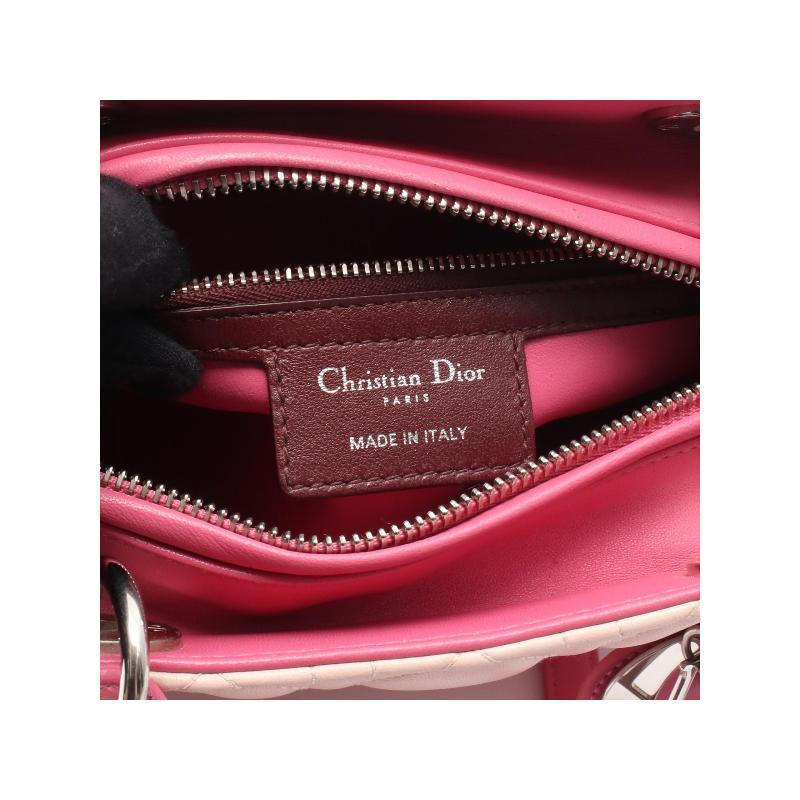 中古Dior迪奥女包B级9新Lady Dior 戴妃包羊皮手提包粉色BRANDOFF
