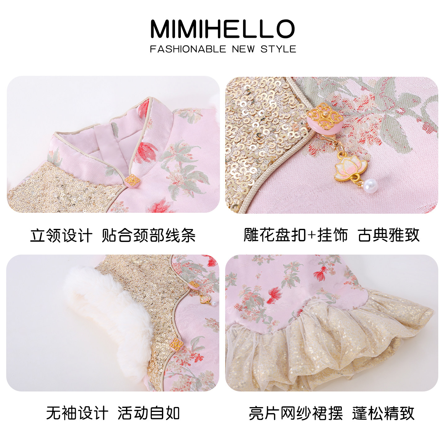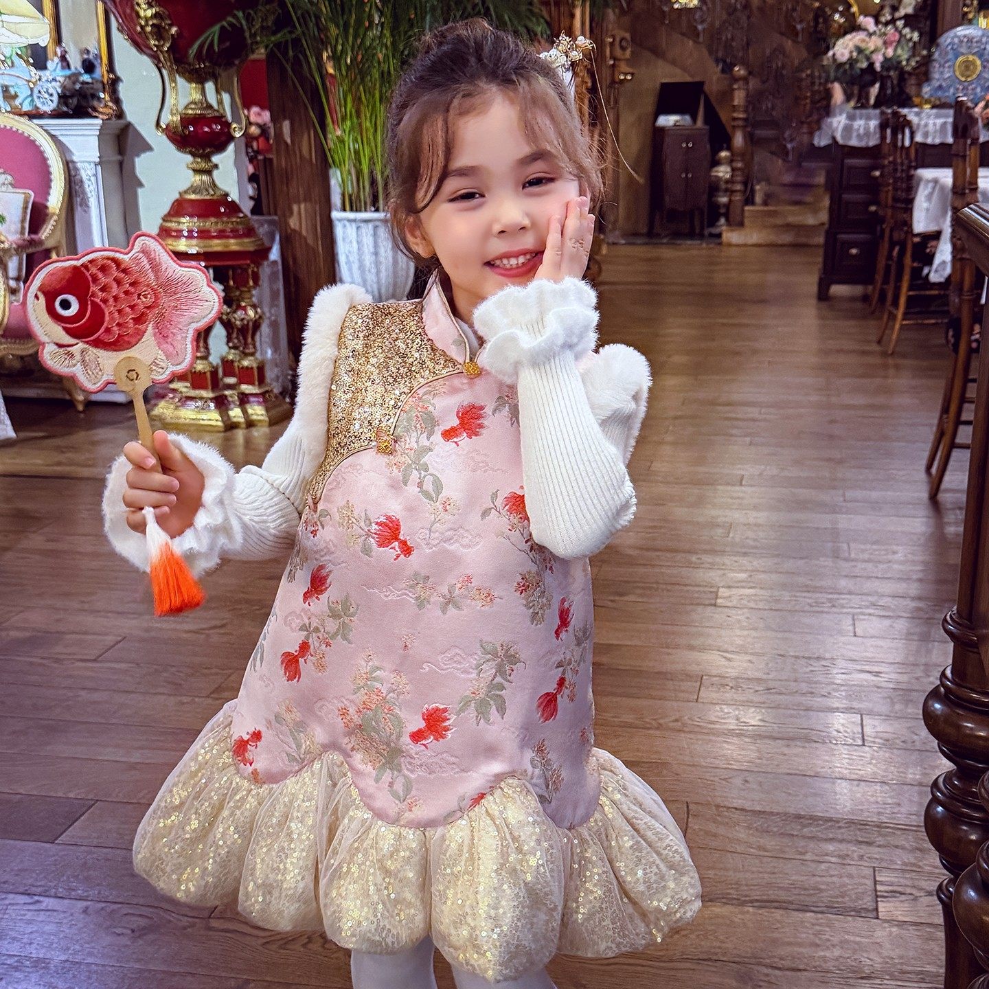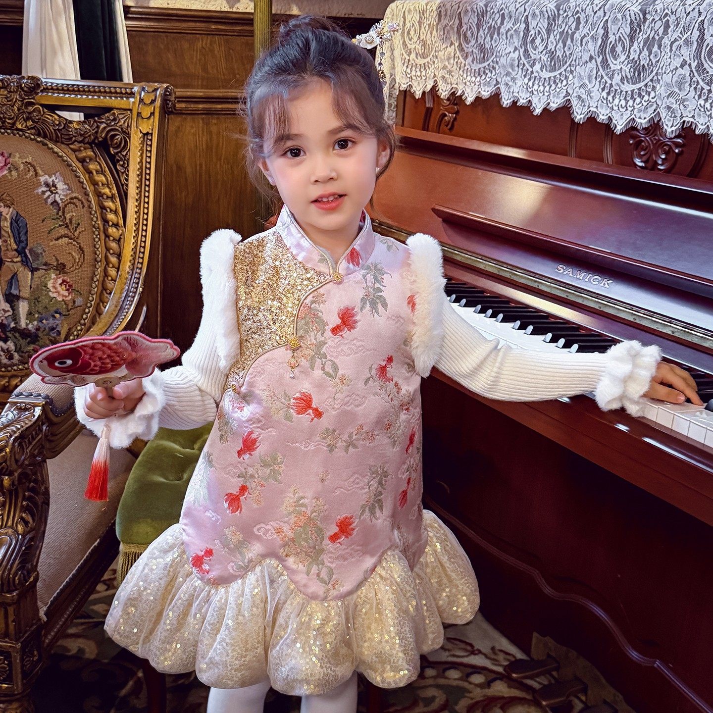 女童织锦国风锦鲤旗袍裙