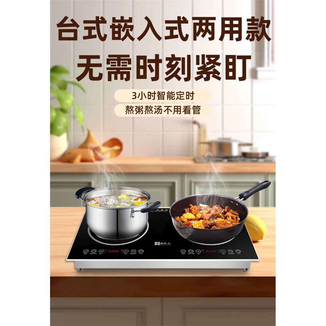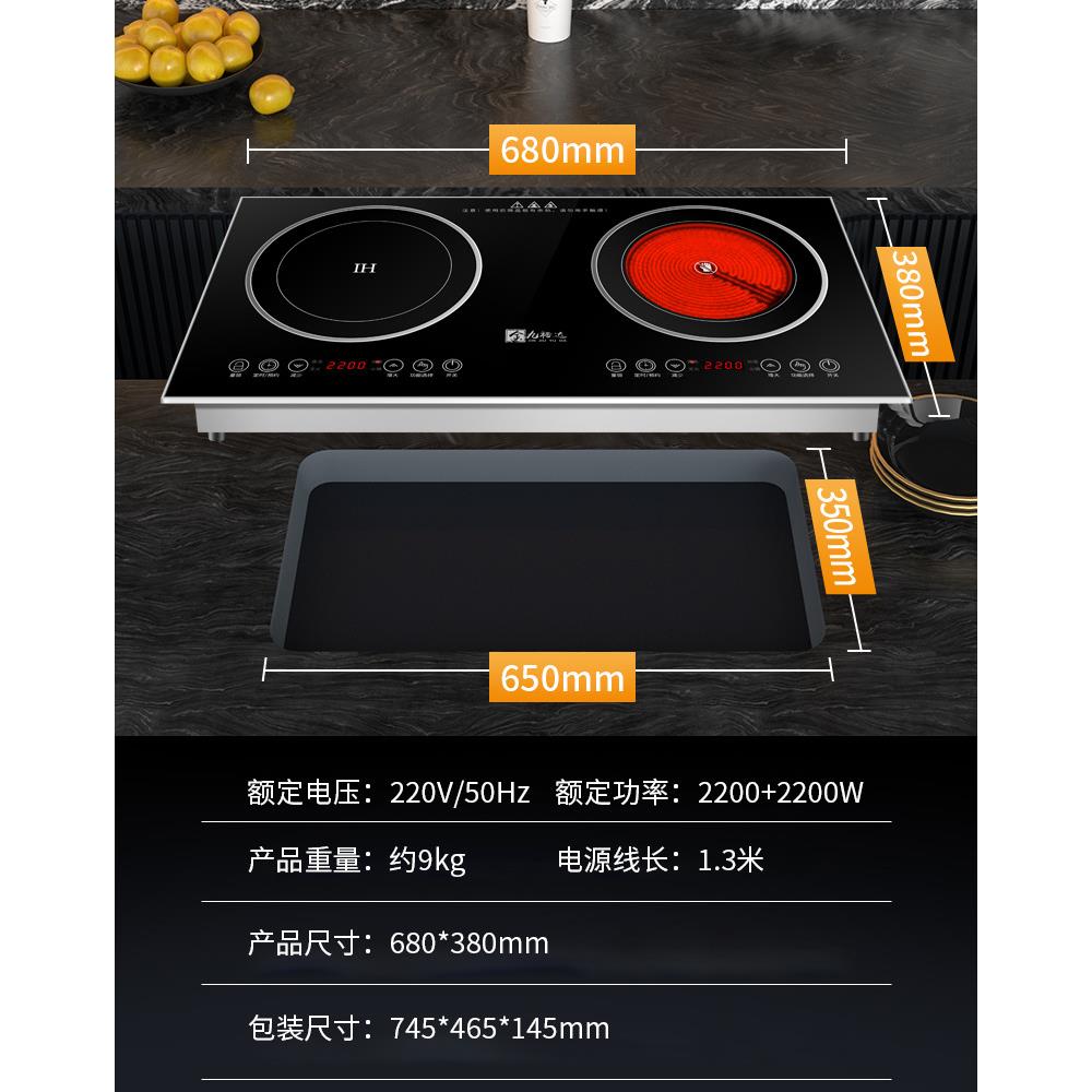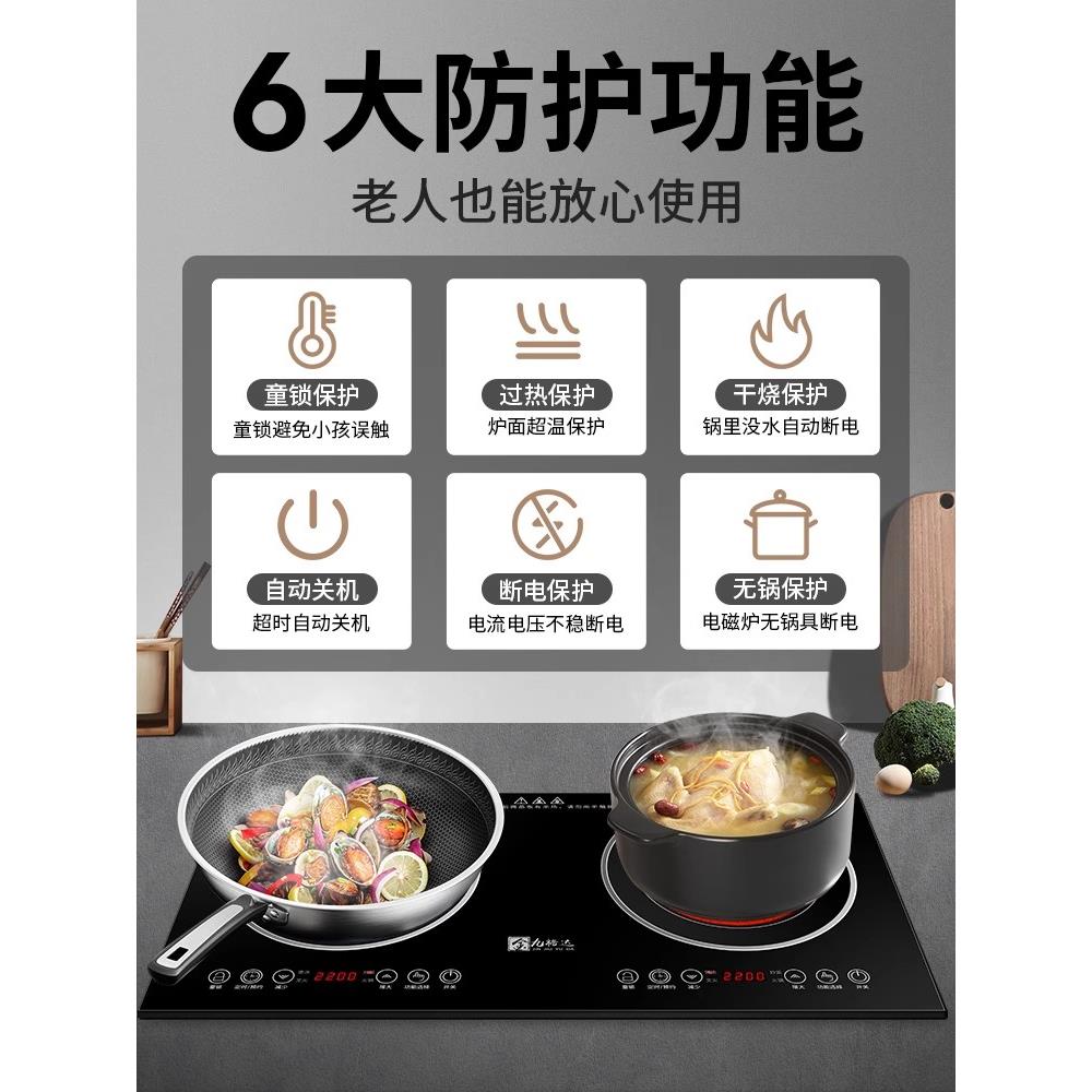 双灶电磁炉内嵌式双头电陶炉双炉家用嵌入台式炒菜炒锅多功能商用
