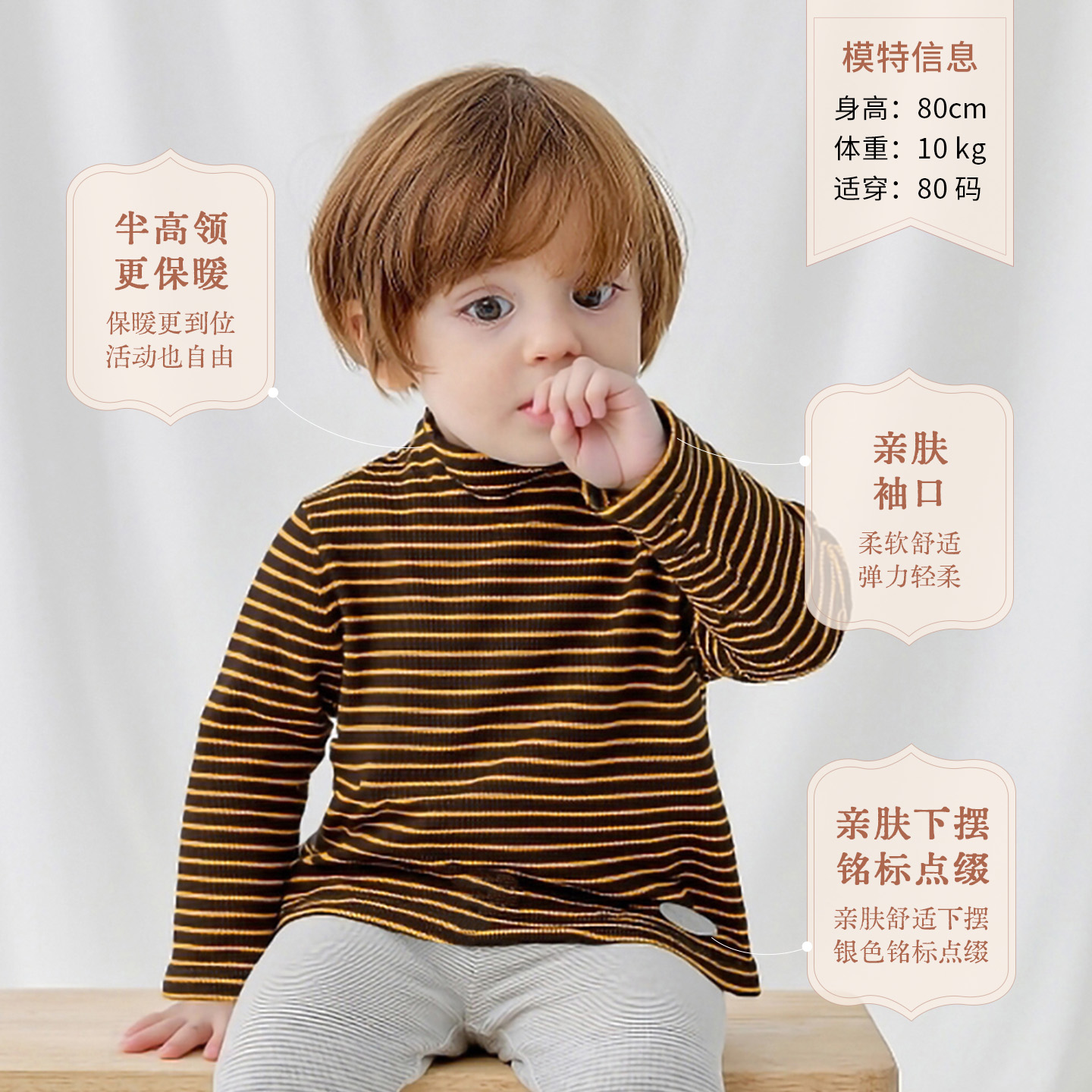 【绵绵日常】小童休闲条纹打底衫秋冬装洋气男女宝宝复古极简上衣