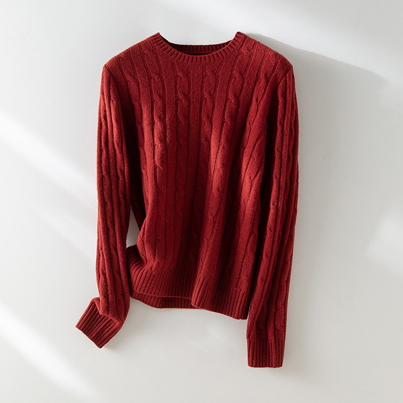 春季新款羊毛圆领内搭上衣针织衫时尚百搭套头红色毛衣打底衣女