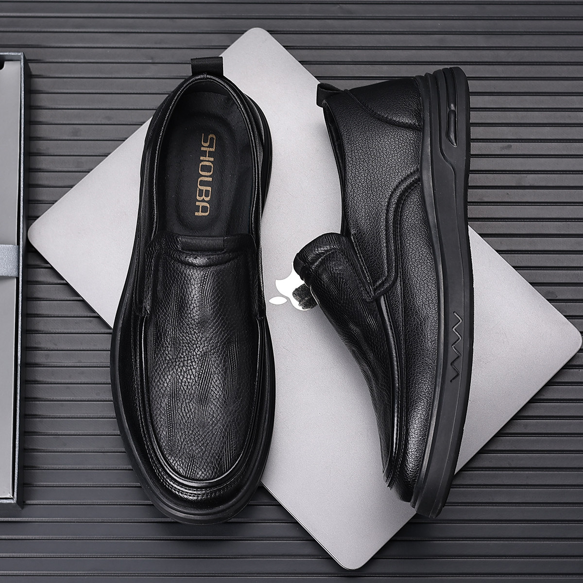 2025春秋季新款商务正装皮鞋男士软底软面透气一脚蹬中老年爸爸鞋