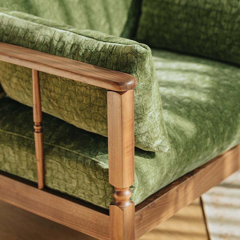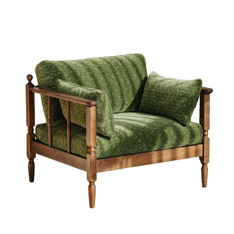 物应莫里斯实木沙发覆古单人位布艺黑胡桃木小户型北欧客厅沙发椅
